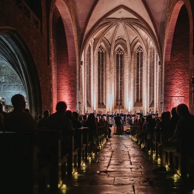 Alors que le style gothique bourgeonne et que l’ère des cathédrales s’ouvre en Occident, une femme hors du commun vient poser sur le papier une musique d’une liberté époustouflante. Hildegarde, cette moniale allemande, abbesse, mystique, savante, fondatrice et écrivain au caractère de feu, compose sa symphonie des harmonies célestes dans le courant du XIIe siècle. « Notre Dame » demeure son idéal et, reprenant un vocable chanté dans la tradition grégorienne, elle l’enlumine de ses notes dans son chant adressé à la mère de la médecine : « Stella Maris » – Etoile de la mer constitue le fil de ce programme.