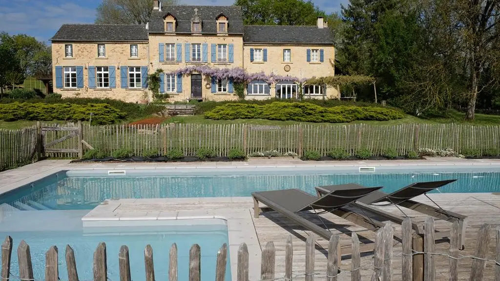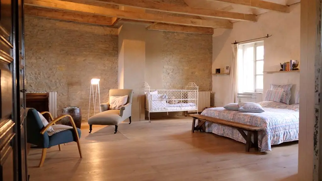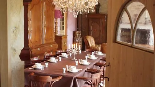 The rooms will surprise you with their ambiance and décor that is both simple and delicate where every detail takes on its value and gives them a very special and unique atmosphere. Each room has a bathroom and 2 bedrooms have a family suite. Breakfasts and meals at the guest table are served in the large living room where stands the monumental fireplace and huge clock, or on the covered terrace or in the shade of large trees. A summer kitchen is available for guests. Salt pool, bowls and cubes, table tennis, 2 bikes. Dinner: € 25. Hobbies: fishing: 3 km, riding stables 1 km, canoeing, climbing, caving: 15 km, walking: on the spot. Photographer on site.