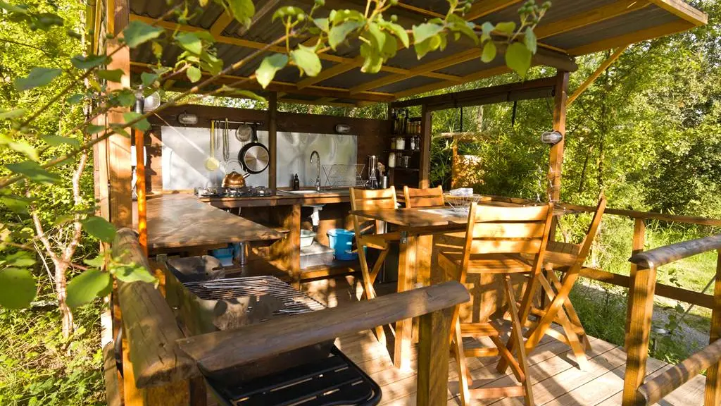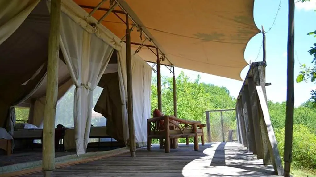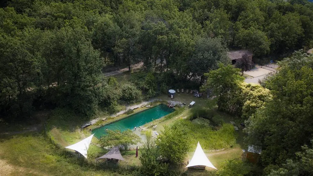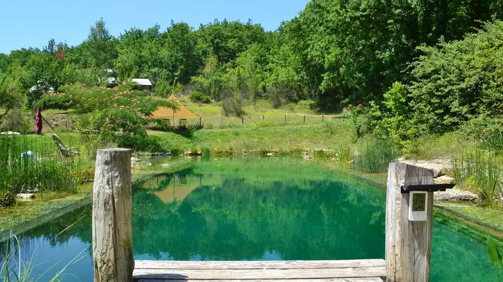You'll be charmed by the lodge tents and showers under the trees. You'll be enchanted by the natural swimming pool with its plant-based filtration system. In terms of daily life, seven lodge tents are spread over a 2-hectare area, ensuring that everyone enjoys their privacy. The shared kitchens and lounge area are ideal places to meet and share, for those who wish to do so.