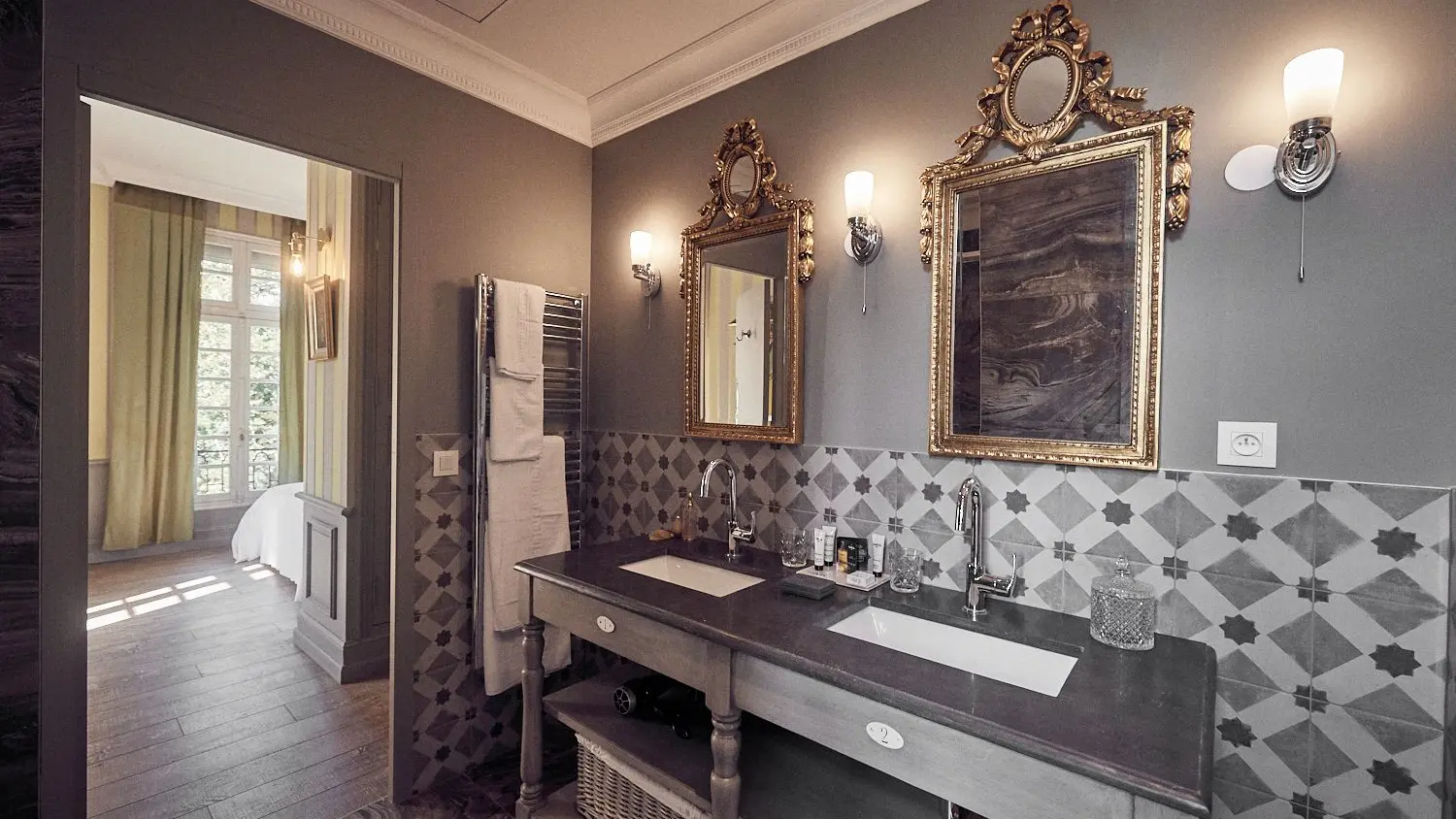 On the 1st floor, a sumptuous corridor leads to 5 guest rooms, named after their ancestors, with refined decor combining comfort, charm and modernity. The "Nathalina" room (2 beds 90 close together, shower room, private independent toilet, balcony overlooking the swimming pool); the "Emilio" room (2 beds 90 close together, shower room, private toilet, balcony overlooking the swimming pool and vegetable garden); the "Maria" room (2 beds 90 close together, shower room, private independent toilet, balcony overlooking the swimming pool and vegetable garden); the "Emilio" room (2 beds 90 close together, shower room, private independent toilet, balcony overlooking the swimming pool and vegetable garden); the "Maria" bedroom (2 single beds, shower room, separate private wc); the "Avelino" suite (2 single beds, shower room, separate private wc); the huge "Poupette" suite with lounge, bedroom with 1 single bed (180cm), bathroom with shower and bath. Reversible air conditioning, TV, wifi internet access in each room. Library on the ground floor with internet access (computer available). In fine weather, breakfasts are served on the veranda, ideally laid out to face the swimming pool and the water lily pond. Shared WC with washbasin on the ground floor. Access to the fireplace in the dining room.