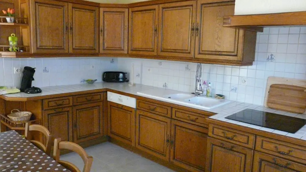 Your house : 1 large living room : dining room + living room with television, DVD player, mini-stereo and fireplace. An independent kitchen equipped with dishwasher, refrigerator, microwave, electric oven, 4 induction hotplates.3 bedrooms: 1 bedroom (1 bed 140) with television - 1 bedroom (2 beds 90) with television - 1 bedroom (2 beds 90). A bathroom equipped with bath and shower. Laundry: washing machine, dryer. Oil heating : read on arrival and departure (extra charge). Electricity in supplement (0.20 cts the KW): meter reading at the arrival and the departure. Cleaning in option : 80€.