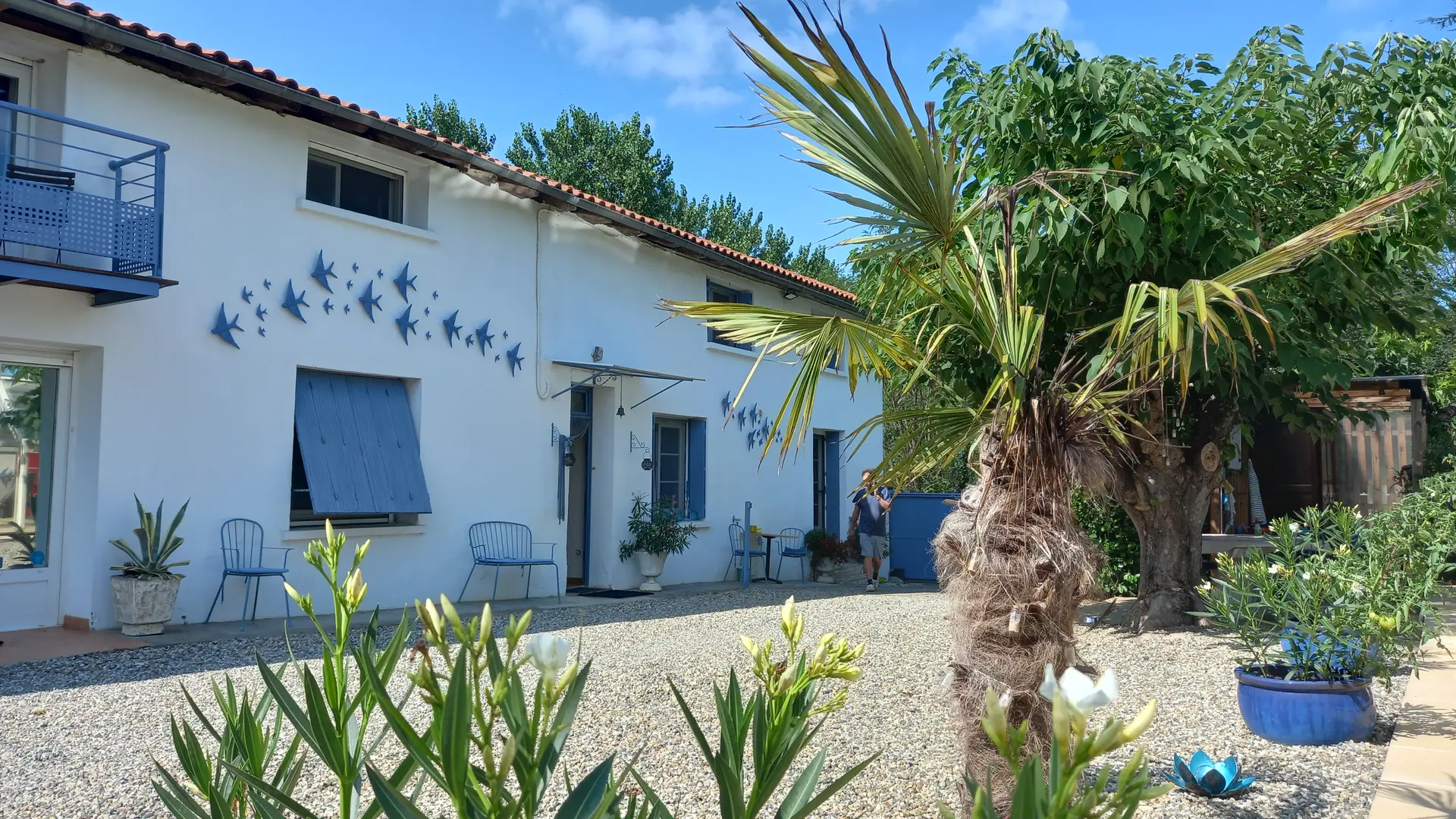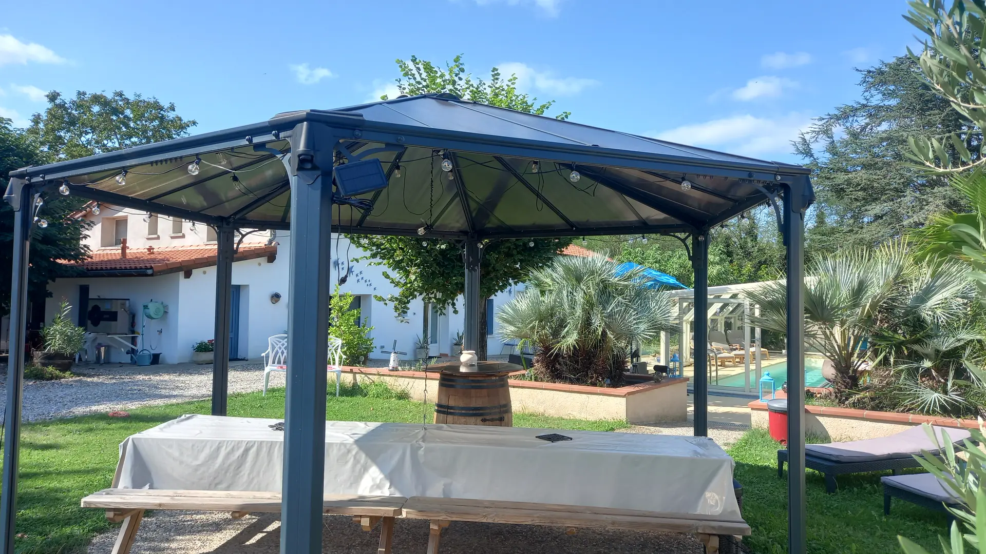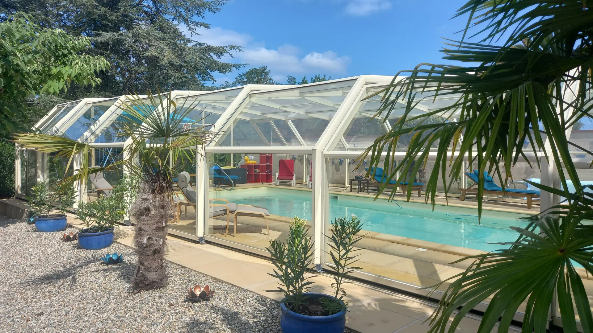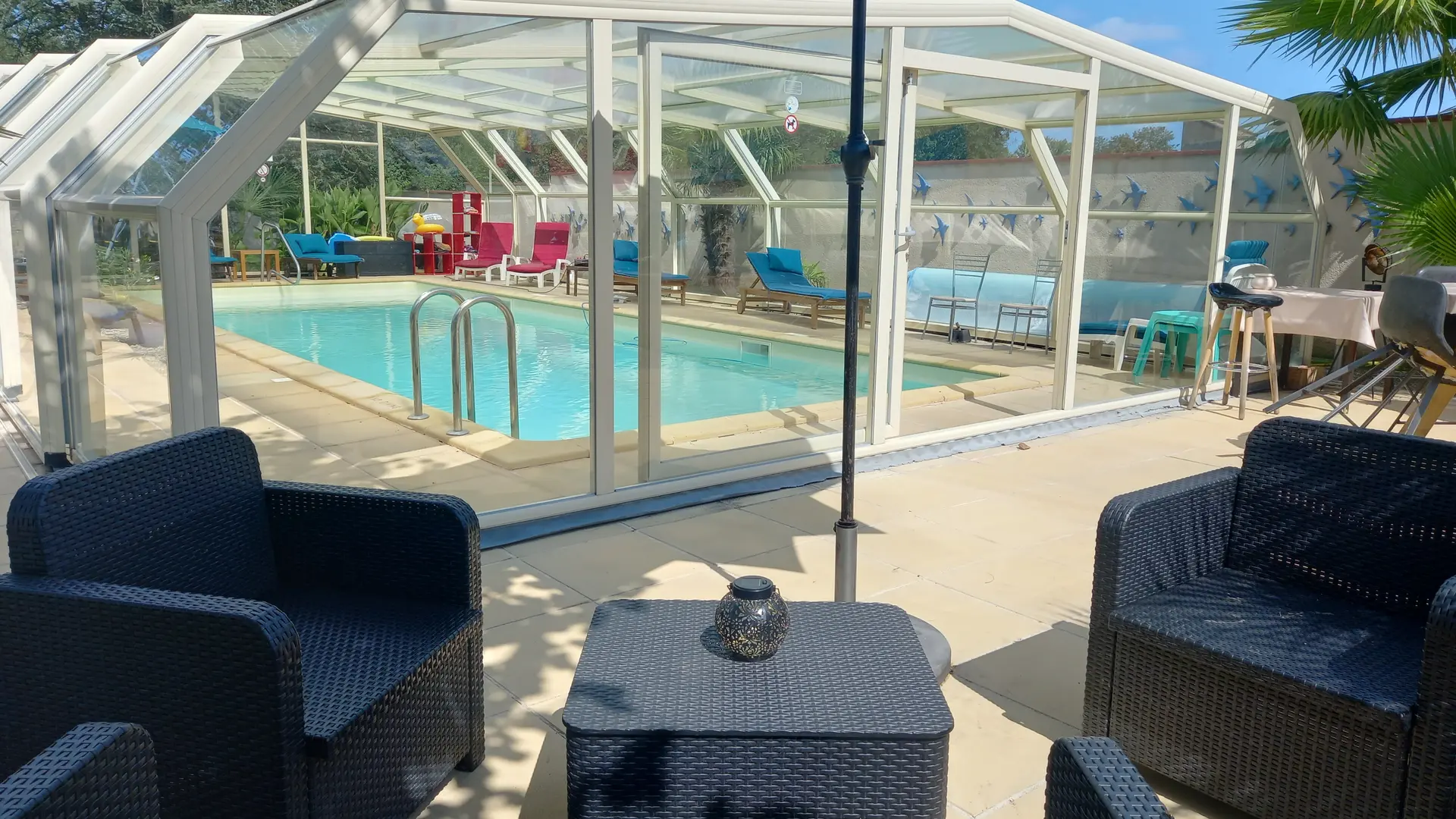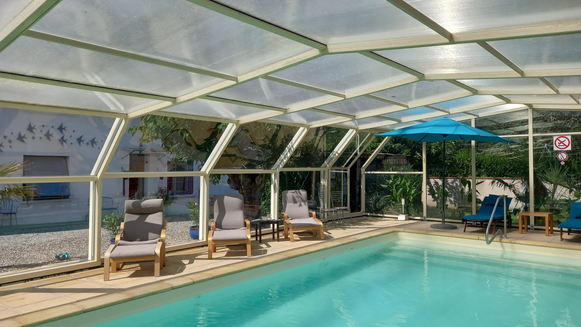 Outside: deckchairs near the swimming pool, barbecue & gas plancha and accessories. Salt water swimming pool (11m X 4m) heated by heat pump with solar shower and 100m² swimming pool enclosure allowing use 8 months of the year. Pétanque and badminton balls, table football, garden of more than 4000 m² with fruit trees with free picking in season, vegetable garden and secure parking for 10 cars with a sliding gate equipped with a digital code. Bike shelter available.