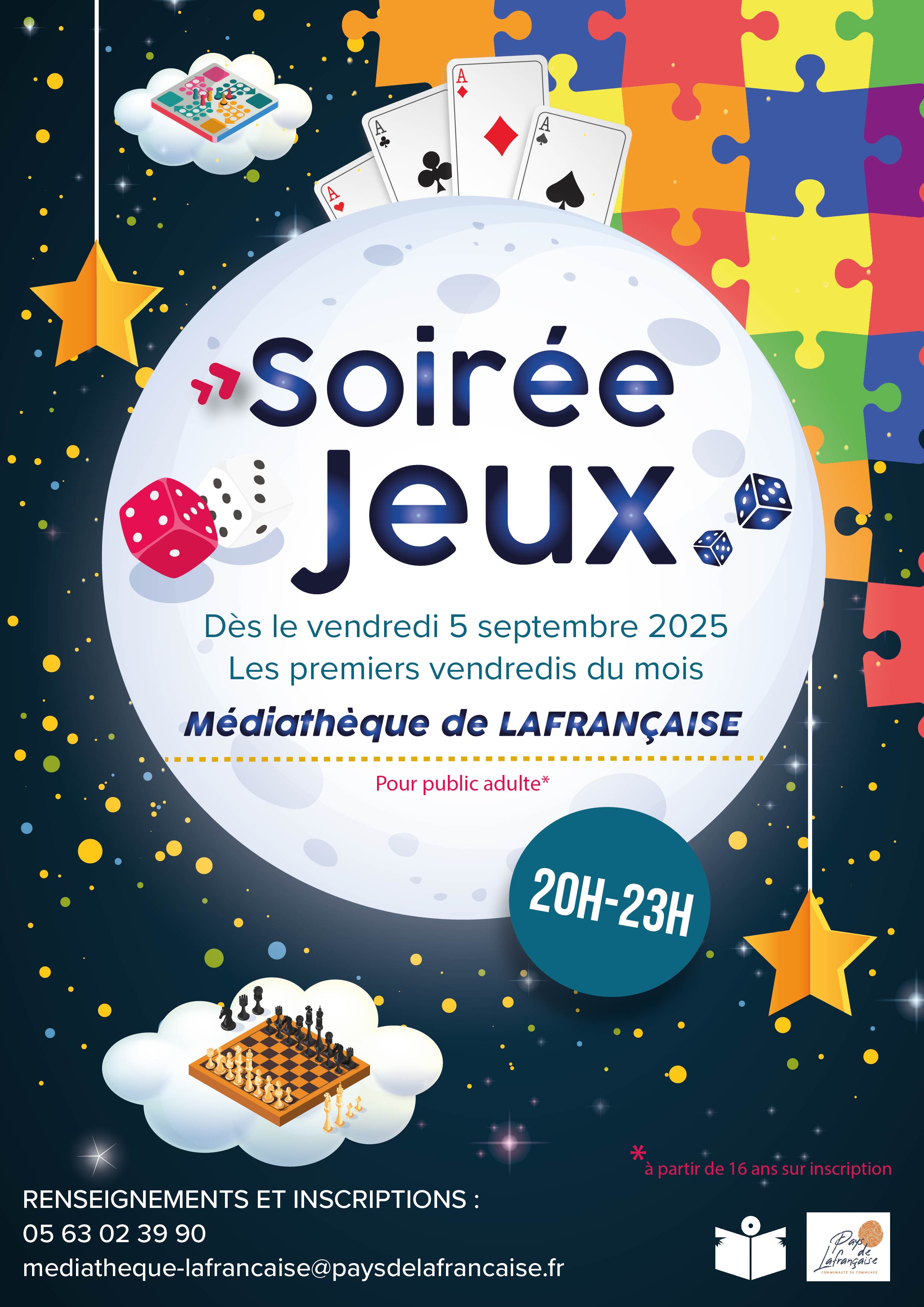 The Social Center and the Cultural Center of the Pays de Lafrançaise offer you game nights for over 16 years. Every first Friday of the month, participate in the Game Night for those over 16 years old!