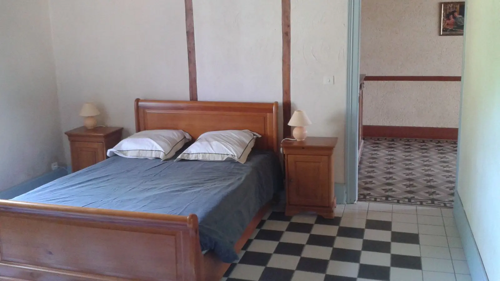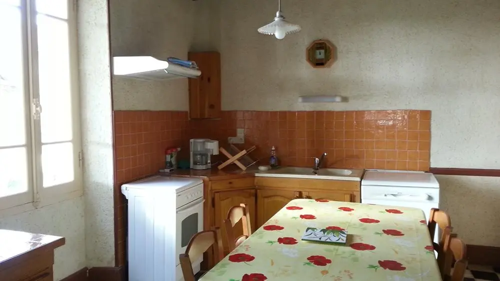Detached gîte in the countryside. Ground floor: 1 large central corridor, kitchen (microwave, LV), living room (sofa, 2 armchairs, fireplace, TV), 2 bedrooms (1 double bed), shower room, separate wc. Unenclosed private grounds (1000 m2). Garden furniture, barbecue. Cable TV not included. Tourist tax not included. Optional: hire of sheets, household and bathroom linen, cleaning. Full electric heating.