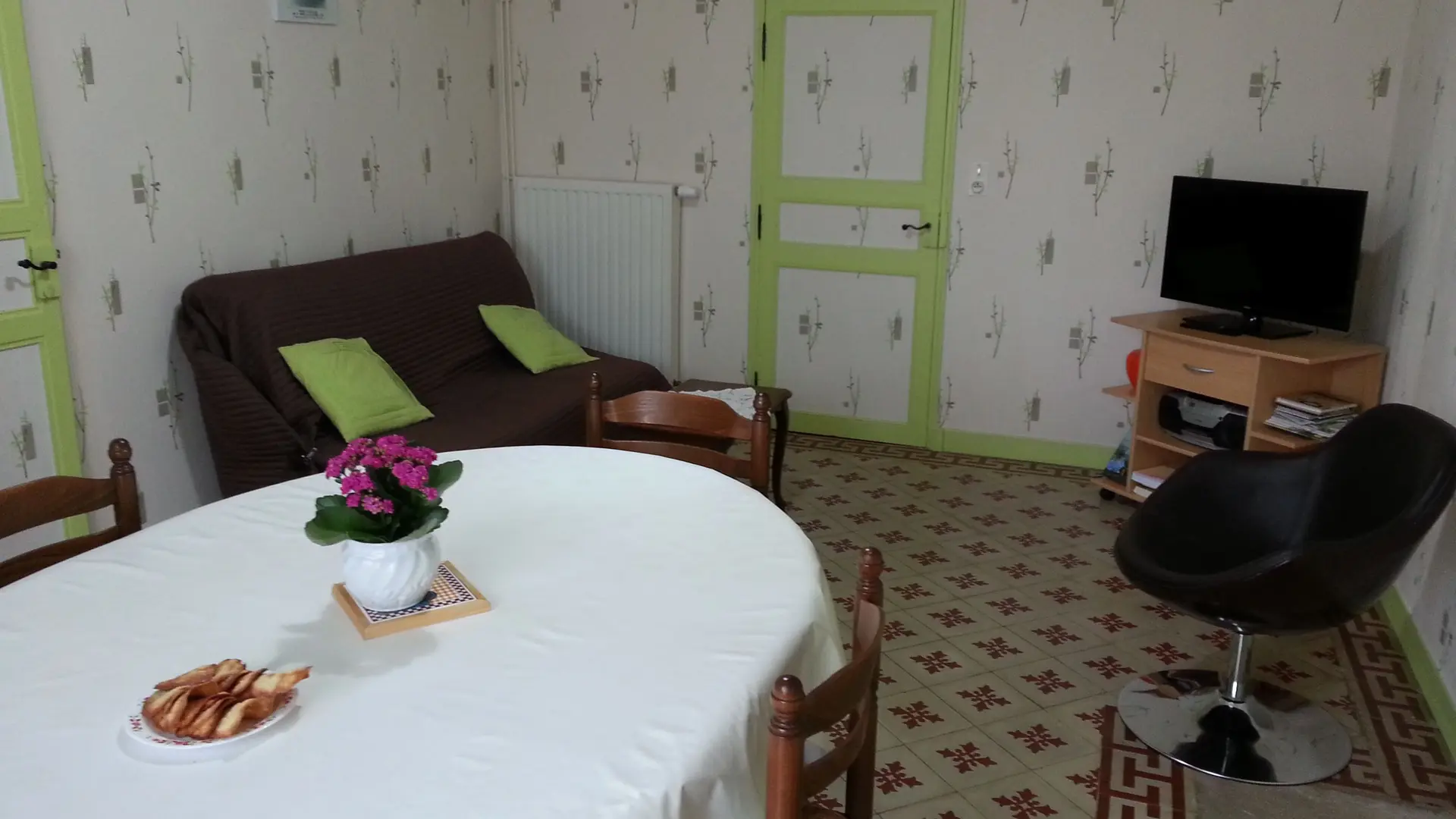 Accommodation comprises: kitchen (MO, LL), living room (sofa bed and armchair), 1 bedroom (1 double bed), shower room/wc. Courtyard with garden furniture and barbecue. Carport. Private freezer in garage. Gas central heating included in the price. Household linen, towels provided, bed made on arrival. Free wifi internet access. Optional cleaning service,