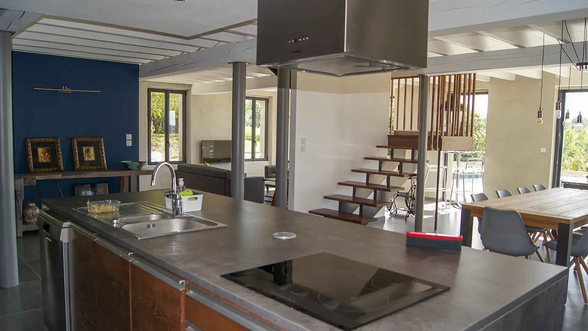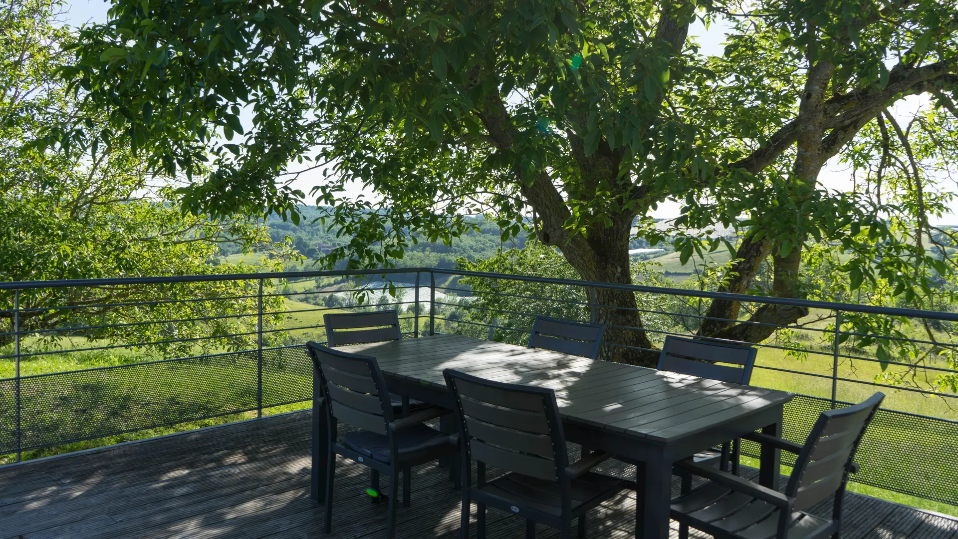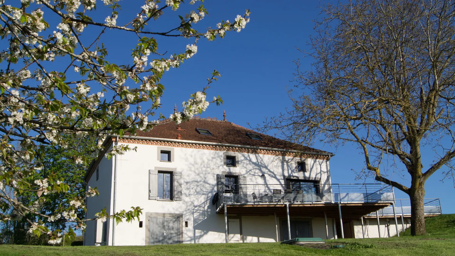 Come and stay in this magnificent house located in the countryside, in the heart of the Tarn and Garonne hillsides. The house is fully open to the outside, and surrounded by a wooden terrace of 110 m2 on 3 sides that encompasses the swimming pool.