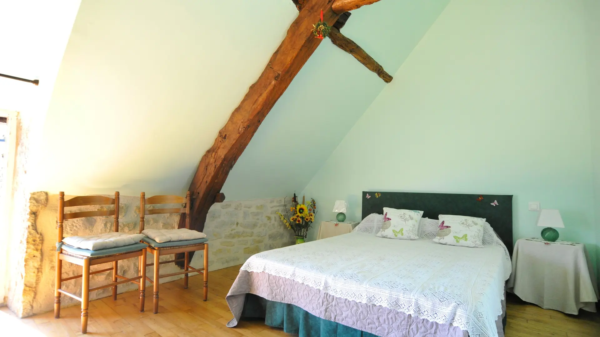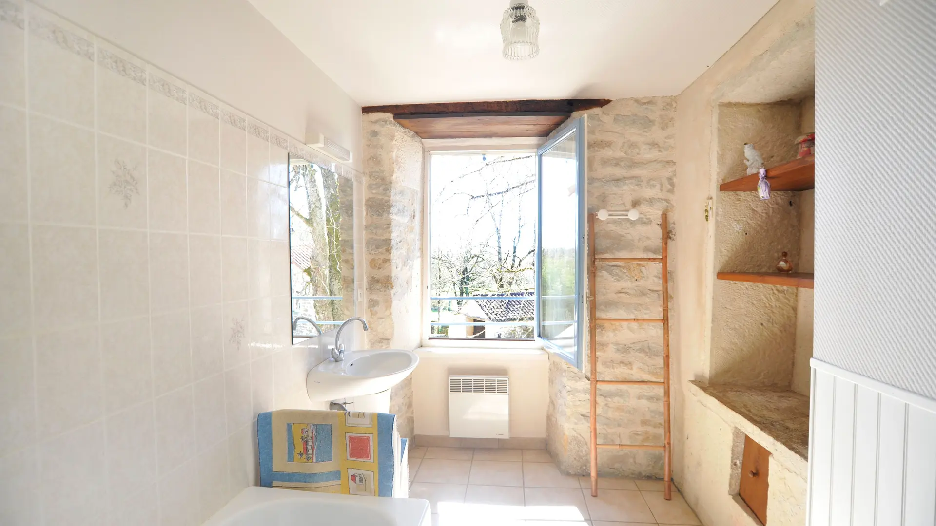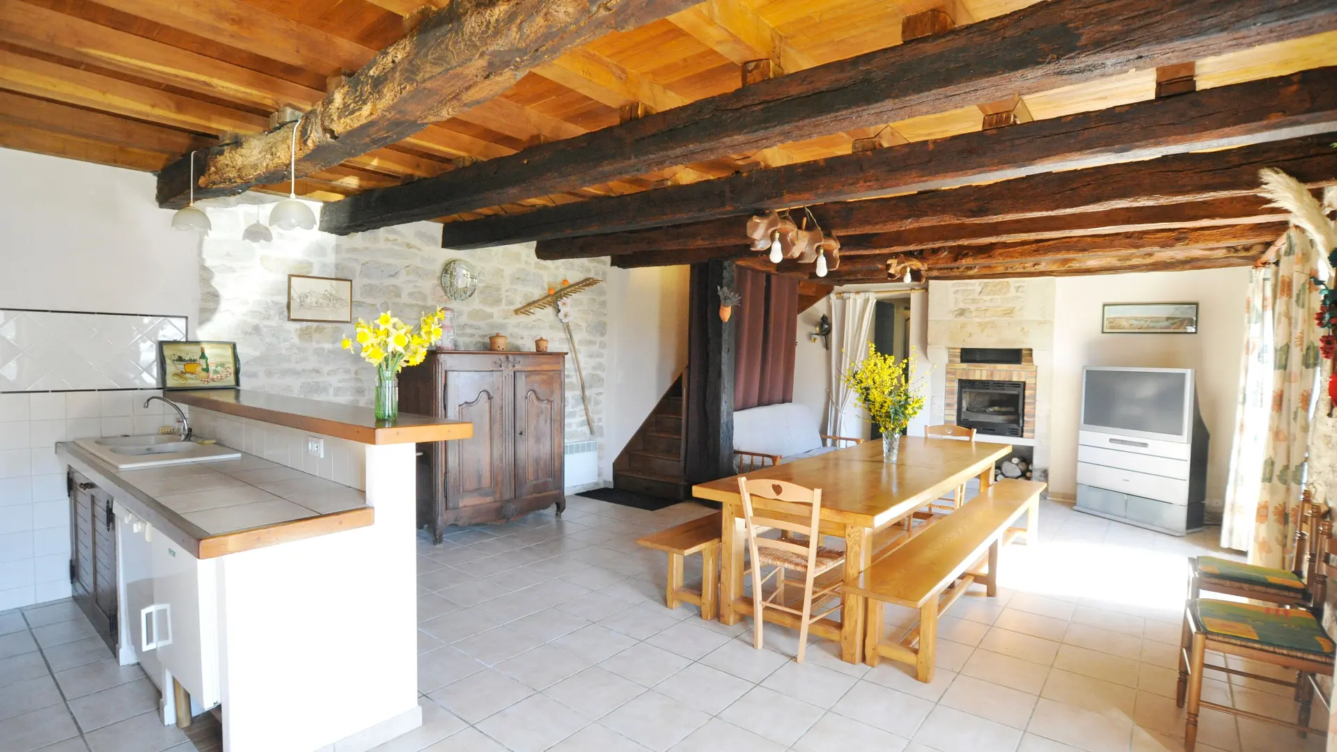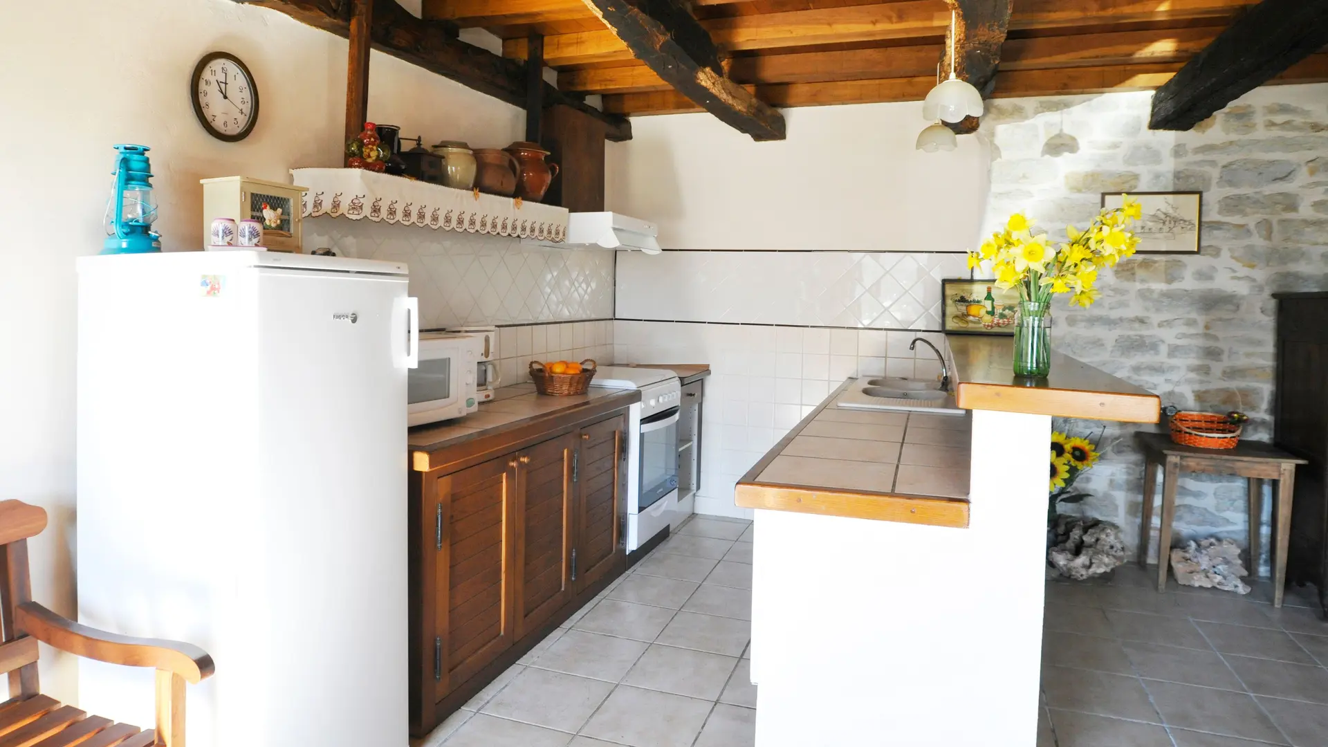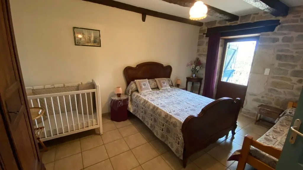 Ground floor: 1 living room (sofa bed, TV, fireplace) and kitchenette (MO, LV). Steps lead up to 1 bedroom (1 double bed 140 + 1 single bed 90), shower room with washing machine, WC. 1st floor: 1 sitting room opening onto balcony with stone staircase, 1 bedroom (1 double bed), 1 bedroom (2 single beds), bathroom, WC. Garage. Unenclosed private garden (450 m2). Private terrace. Garden furniture and barbecue. Tel tel living room. Electric heating. Optional extras: cleaning, wood. Price includes: bed linen, towels and household linen. Price does not include tourist tax. Free wifi access.