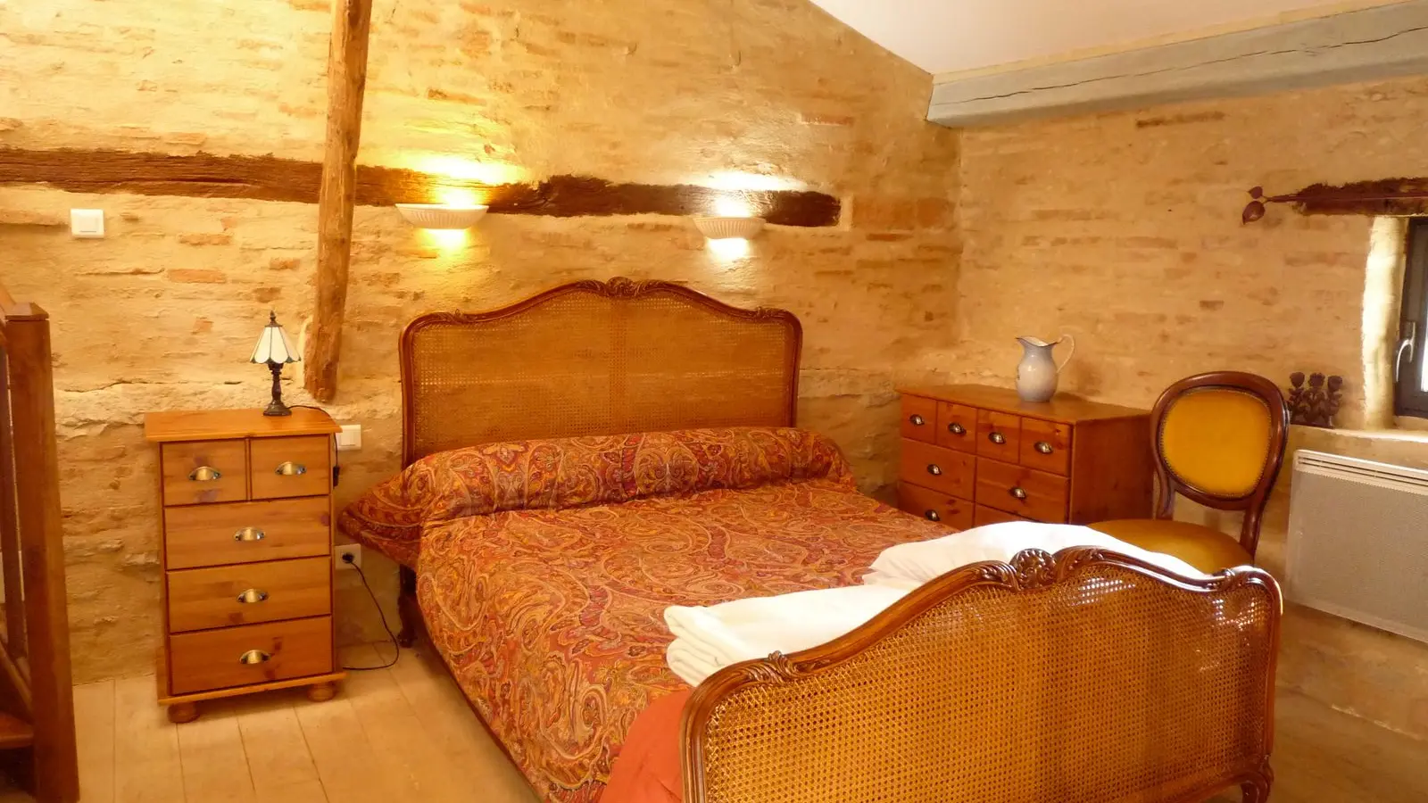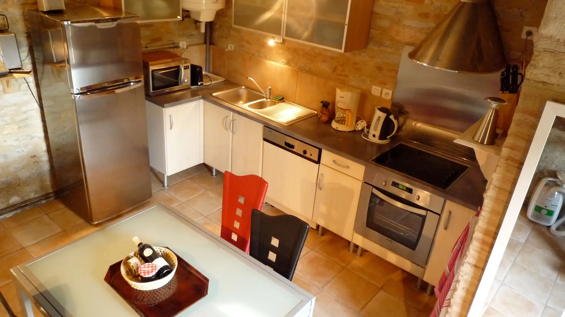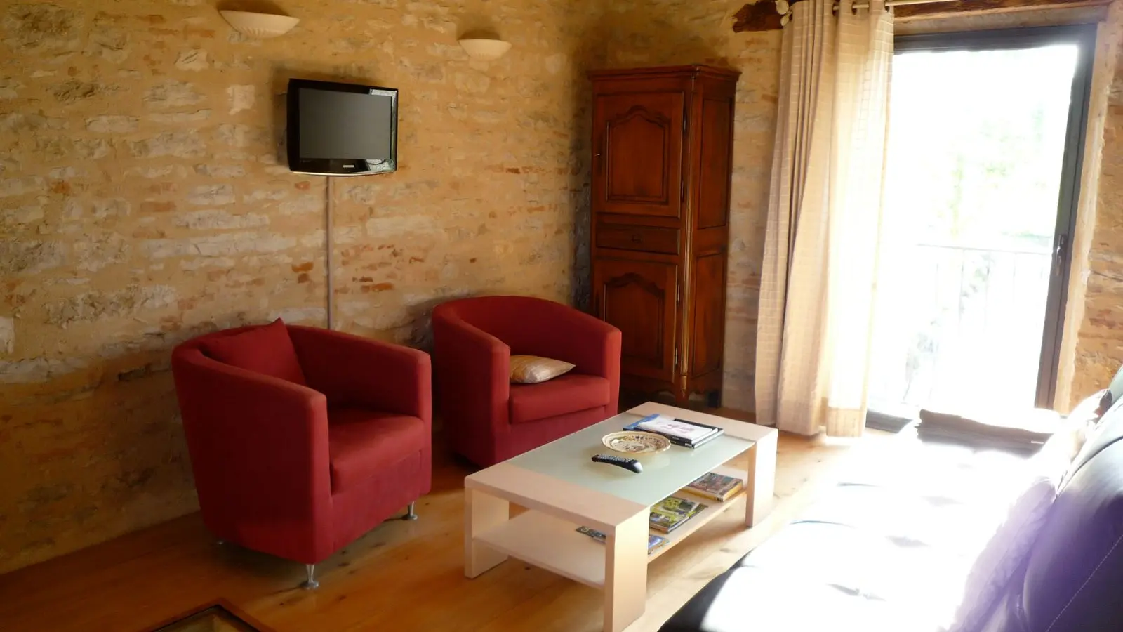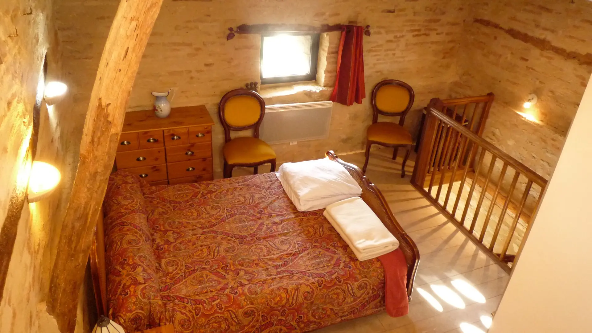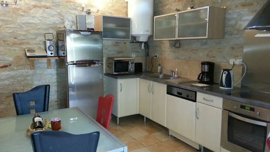 Ground floor: living room with fitted kitchen area (MO, LV), separate wc. 1st floor: sitting room (sofa, 2 armchairs). 2nd floor: 1 bedroom (1 x 140cm bed), shower room/wc and mezzanine (1 x 140cm bed). Access to a storeroom next to the owners' house (LL). Terrace, garden furniture, barbecue. Price includes: household linen, electric heating, wifi internet access. Optional: bed linen, towels and cleaning.