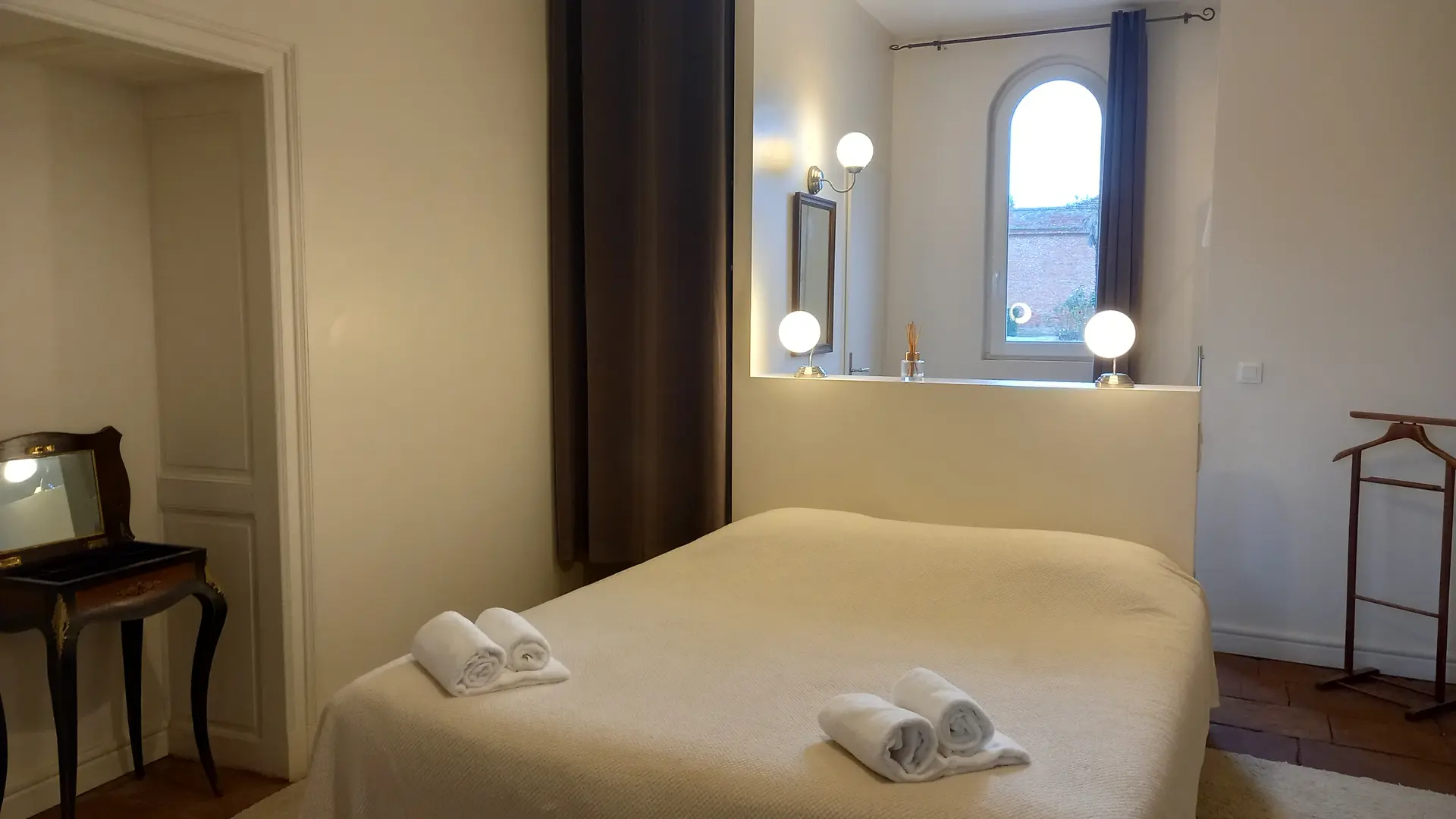 Looking for a friendly get-together with friends or family? The Manzana gîte will be the ideal place to welcome you to the enchanting setting of Château Lavalade. From your accommodation, you can access the 5-hectare wooded park surrounding the château and leading down to the banks of the Tarn, as well as the outdoor swimming pool, perfect for cooling off on a summer's day.