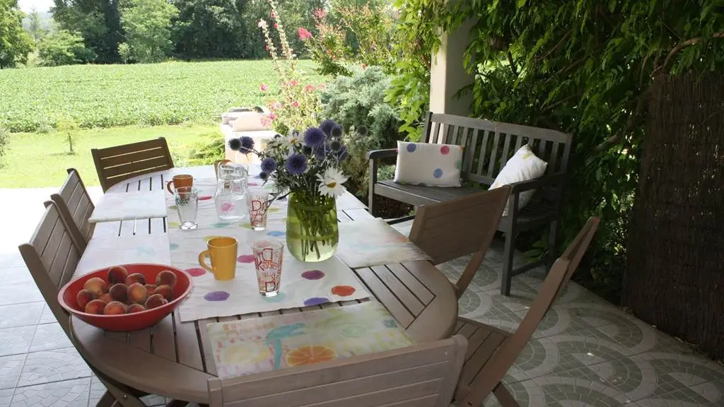 Several advantages to this cottage: countryside, near cities, main roads and many activities for the whole famille.Il includes integrated kitchen (microwave, combi-CG), a dining room, lounge (fireplace), 3 HP (2 with 140 1 bed, 1 with 2 beds 90), 1 bathroom and a separate WC. Cellier (SL). Pleasant outdoor area, ter-rasse flowered park and surrounding woods with hiking paths that lead you to "Canal lateral a la Garonne". Extra heating in low season. Recreation nearby: bowling, fishing, tennis, horse riding, tree climbing, wine course 6 km, all shops prox-mimics: 6 km.