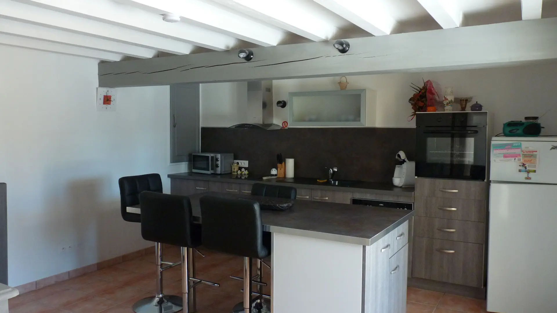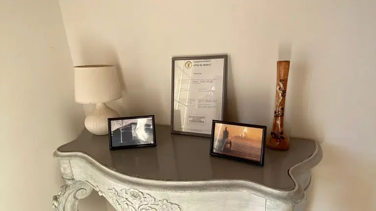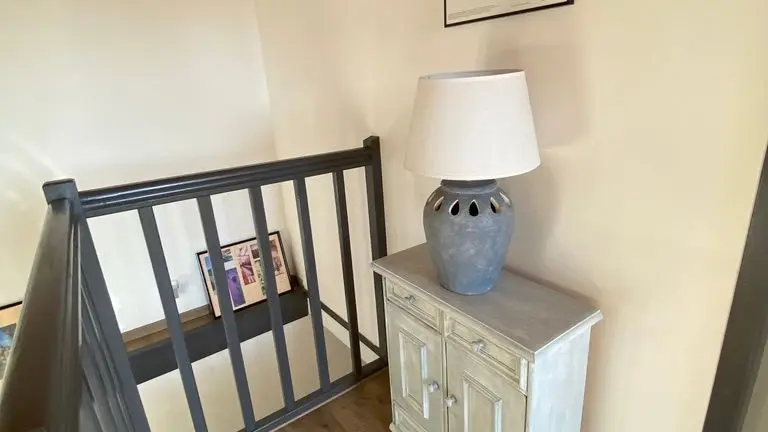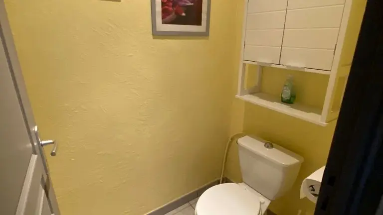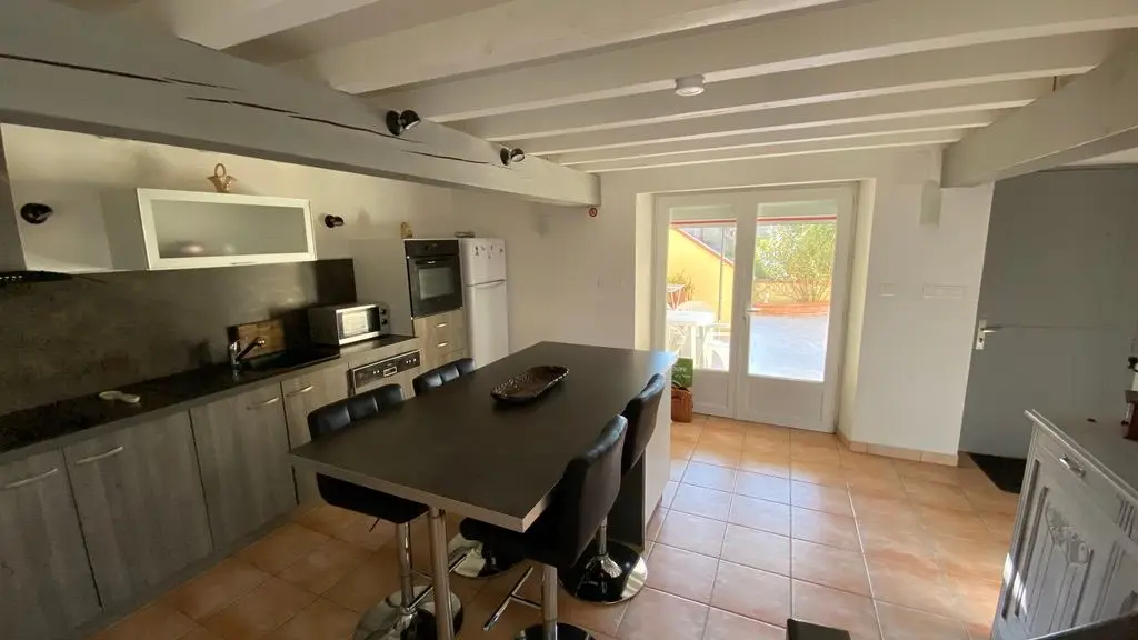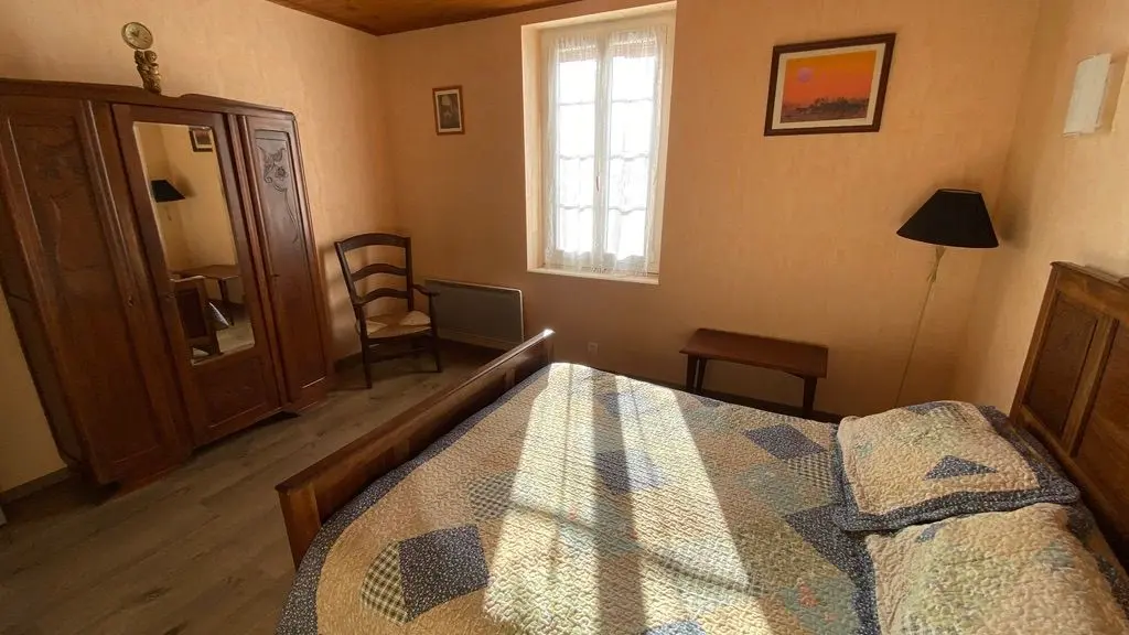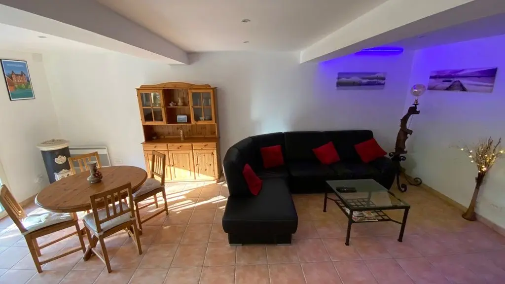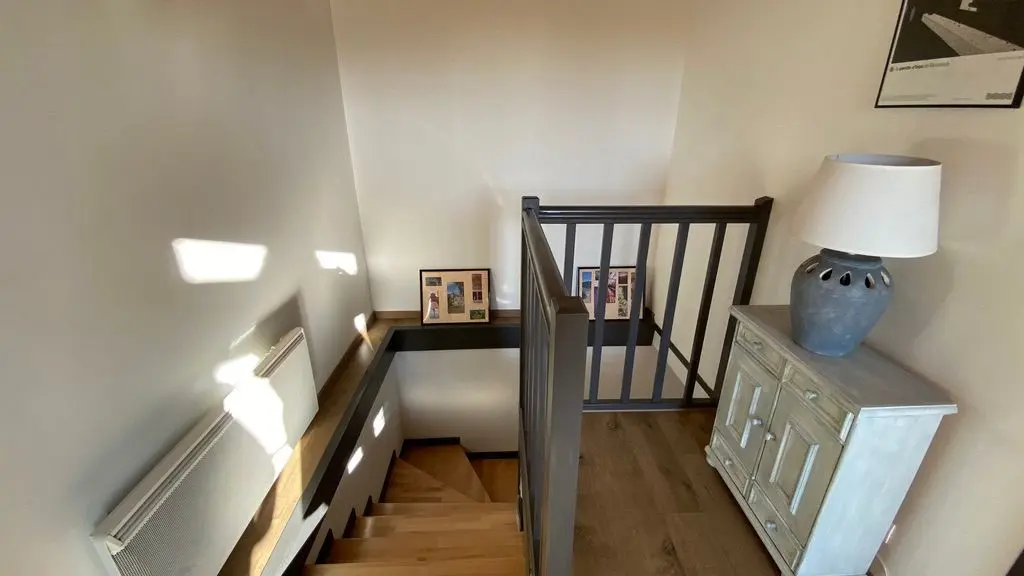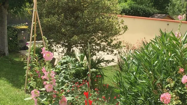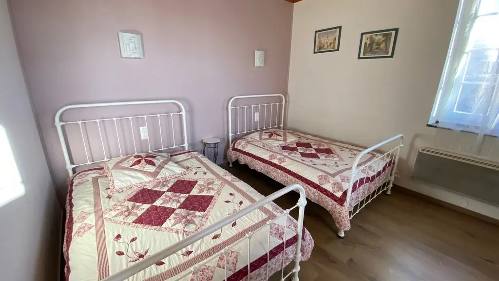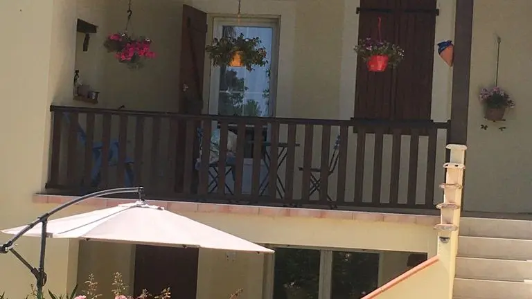 Garden level: fully equipped kitchen (LV, MO), dining room with sitting area (TV, corner sofa), wifi internet, 1 wc. Level 0 on the street side or level 1 from the kitchen: 2 bedrooms, 1 bedroom with 2 single beds (120cm), 1 bedroom with 1 double bed (140cm) and dressing room. Shower room (Italian shower, LL), 1 separate WC, storage cupboard. Entrance hall. Balcony terrace and garden-side terrace, garden furniture, parasol, barbecue. Garden with trees. Electric gates. Bed linen and towels provided, heating included. wifi throughout. Air-conditioned gîte.