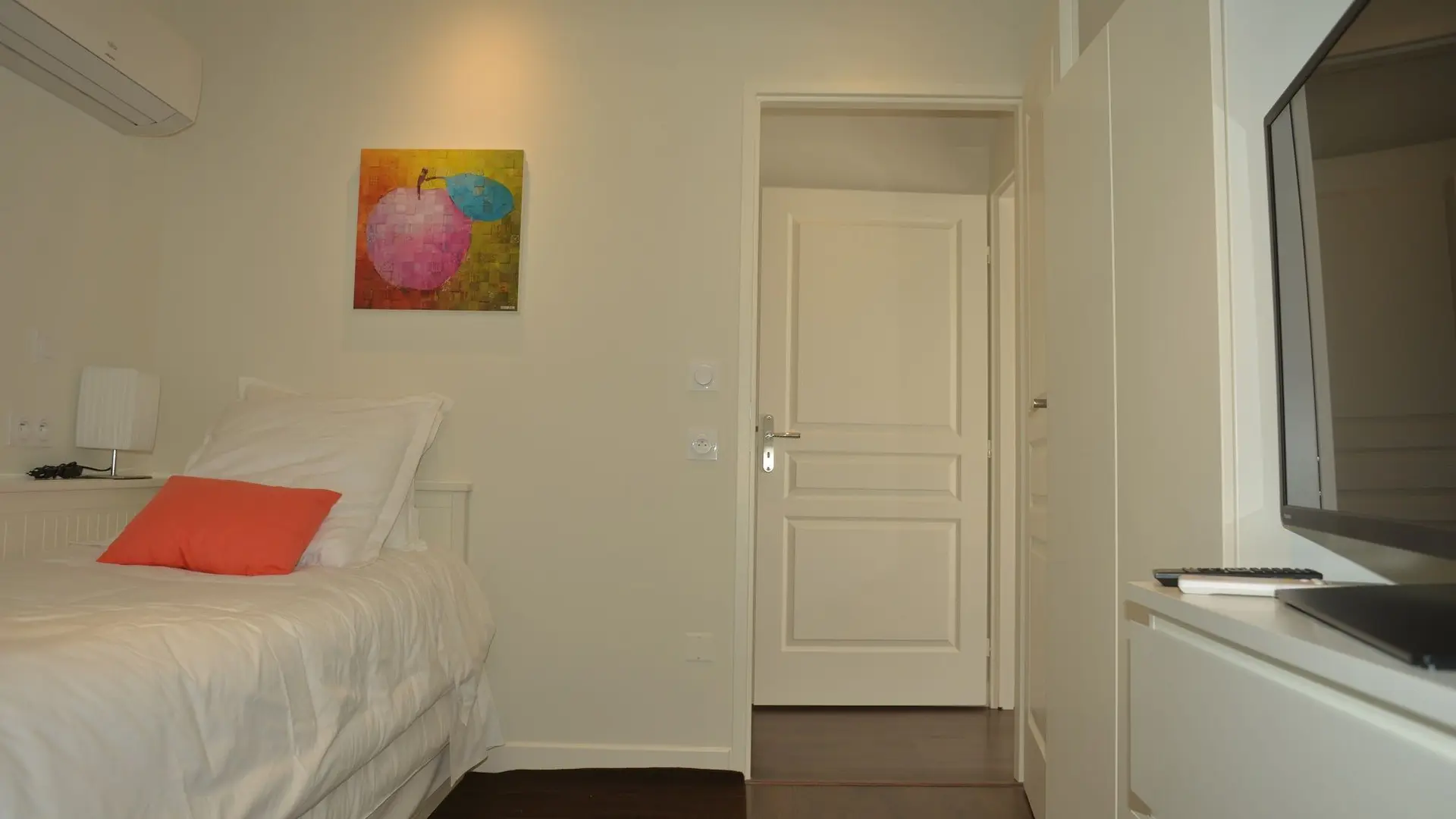 1 bedroom with 2 90 cm beds, television.