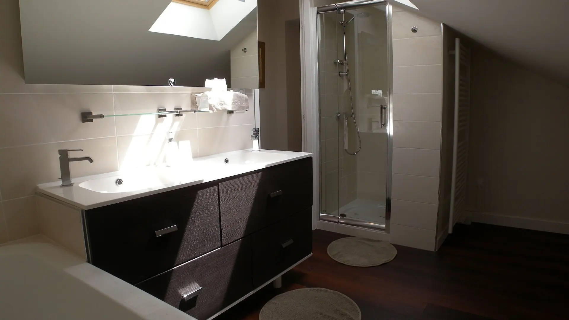 Separate toilet, bathroom with shower and bath.
