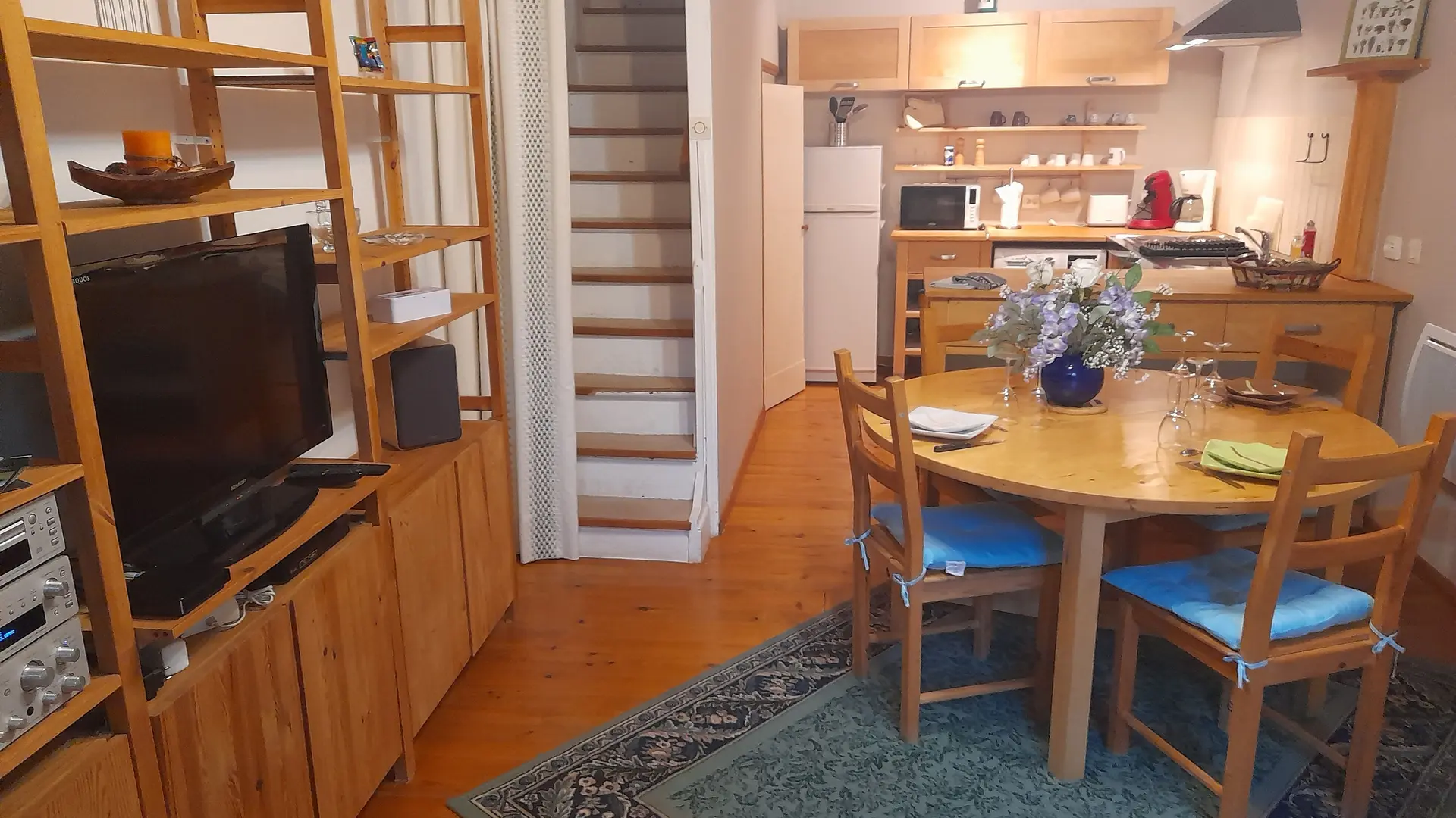 Inside, wood meets stone. The ground floor is divided between a kitchen (fitted units with oven, fridge, freezer, hob, combined washing machine and tumble dryer, oven, Senseo, toaster, microwave) and a living room (sofa, TV, hi-fi). On the 1st floor, the master bedroom has 1 double bed (140cm) and offers an exceptional view of the sky and the village bell tower from its window. Separate shower room and wc. On the 2nd floor, the dormitory-style bedroom with 2 single beds (0.90cm) and 1 extra bed (0.90cm) has a skylight overlooking the Puylaroquain skyline. A touch of modernity with WIFI means you won't be totally disconnected. Beds and towels are provided on arrival. Electric heating available at extra cost on arrival/departure meter reading - A courtesy tray is available, with regional produce from the Caussade market. Free parking nearby (next to the town hall or Place de la Citadelle). For a 3-night weekend or a week's stay, or even longer, we look forward to welcoming you. We look forward to seeing you soon.