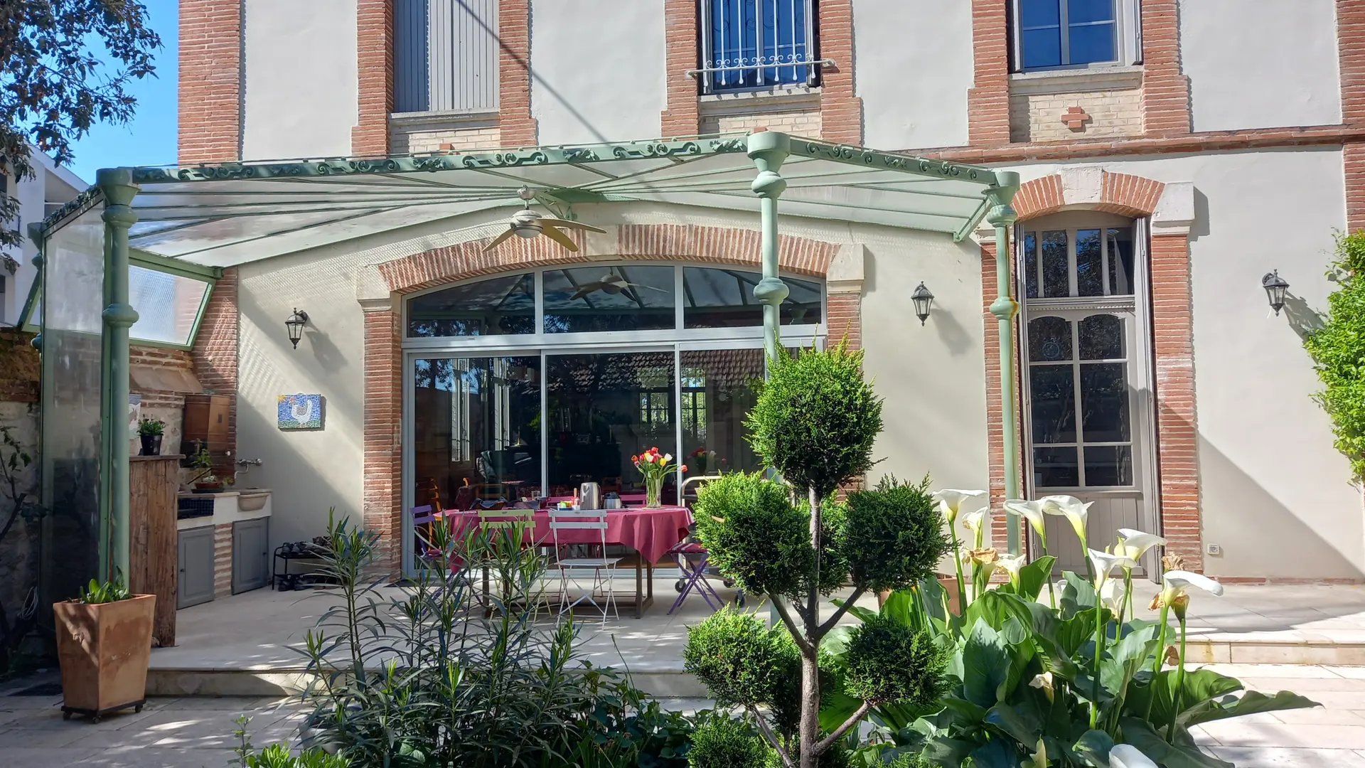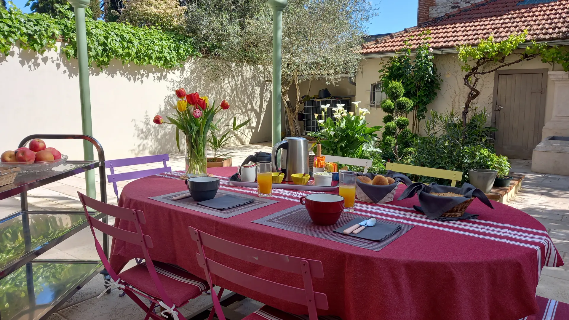 Enjoy a gourmet, homemade breakfast, served either in the enchanting atmosphere of the interior courtyard under a magnificent glass roof or in the owners' cozy dining room.