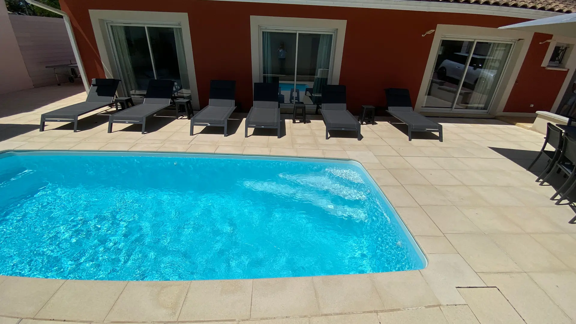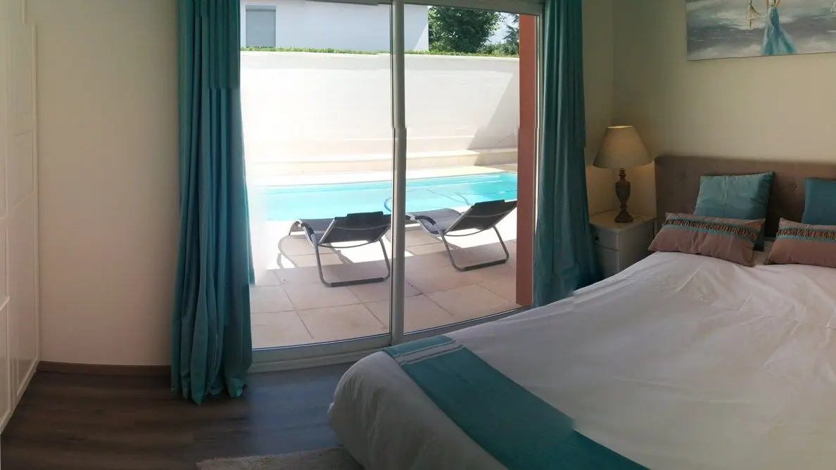 La maison rouge in Montauban is a new detached house, with its heated swimming pool, located in a quiet area, close to the city centre, (1km500, 3mn by car) on one level.