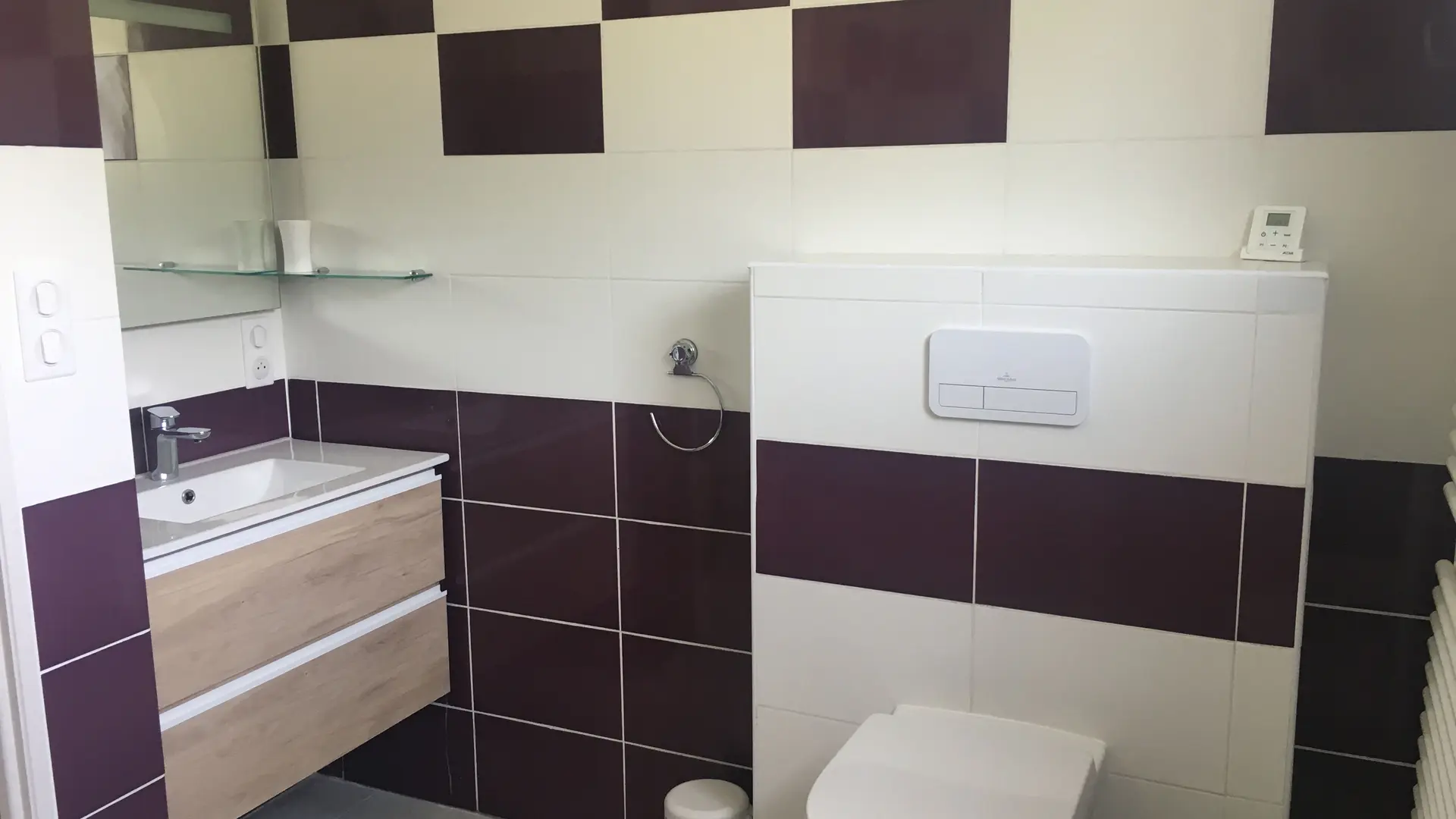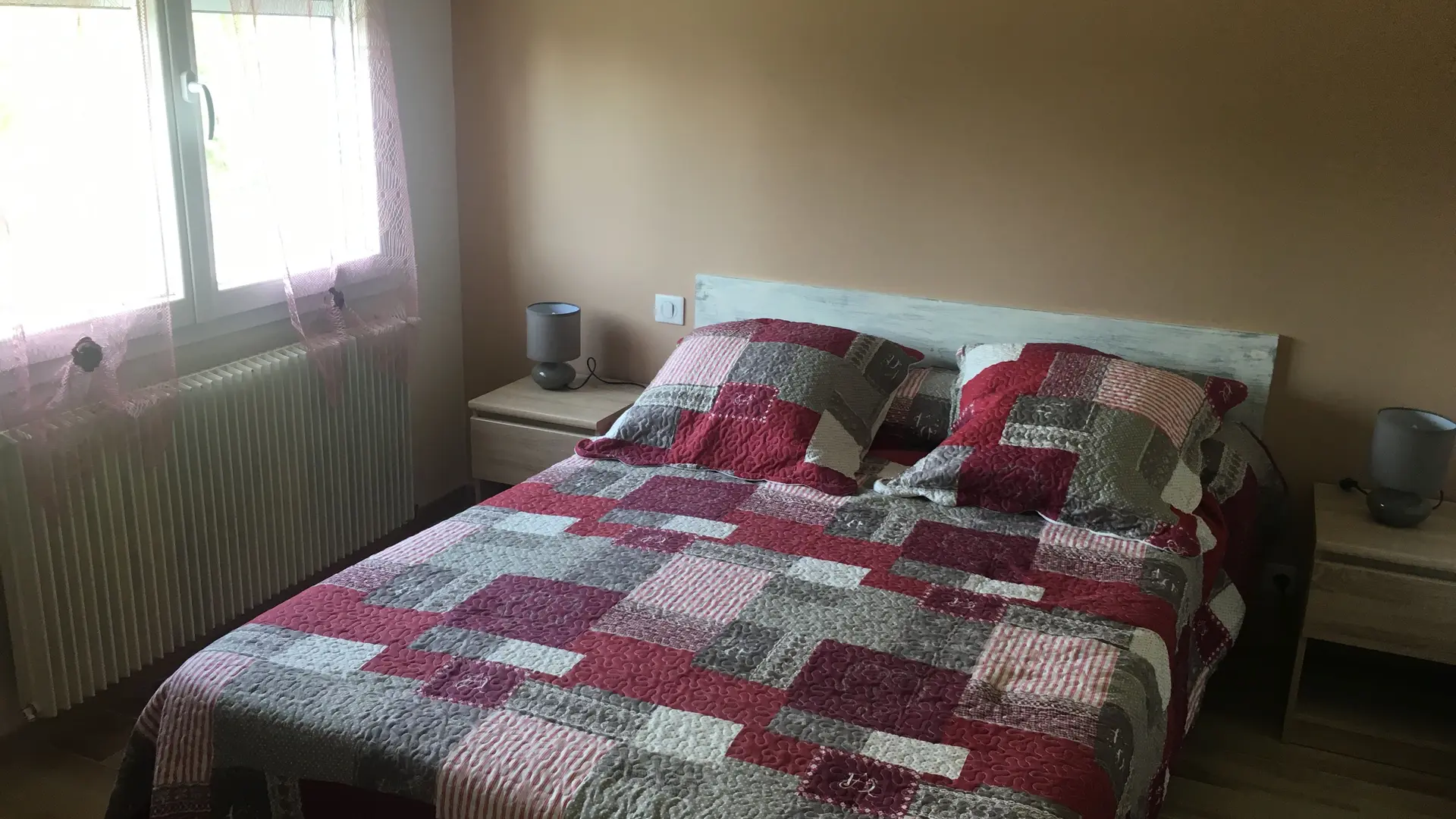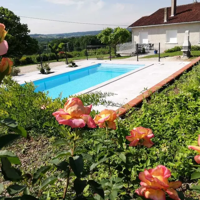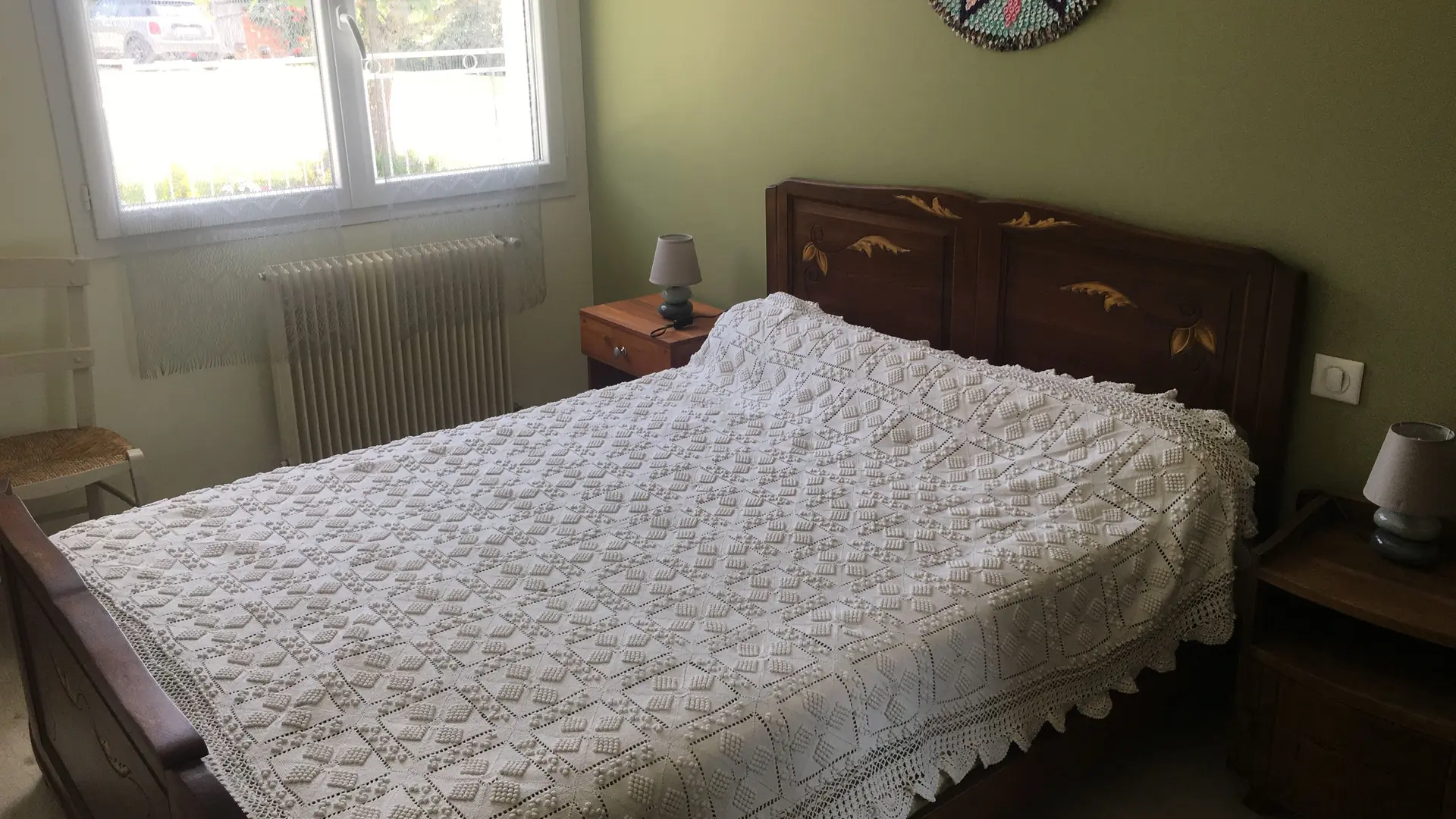 Independent gite, accessed either by an 8-step staircase or by a ramp from the terrace, the accommodation is on one level. An entrance hall leads on one side to a living room with its fitted kitchen area (LV, microwave), a storage room with washing machine, and on the other side to a lounge (2 sofas, an armchair) and a fireplace (flat-screen TV). An airlock gives access to two bedrooms: 1 with a double bed (140cm) and 1 with 2 single beds (0.90cm), a large shower room with shower and washbasin, and 1 separate toilet with washbasin. A small corridor leads to 1 bedroom (1 double bed with private shower room and wc), 1 dressing room. Terrace with garden furniture, garage for 2 cars, table tennis room, access to barbecue; Wifi, bed linen and household linen provided. Towels optional. Large fenced garden surrounding the gîte. Heated, gated swimming pool: 8m x 4m x 1.40m.