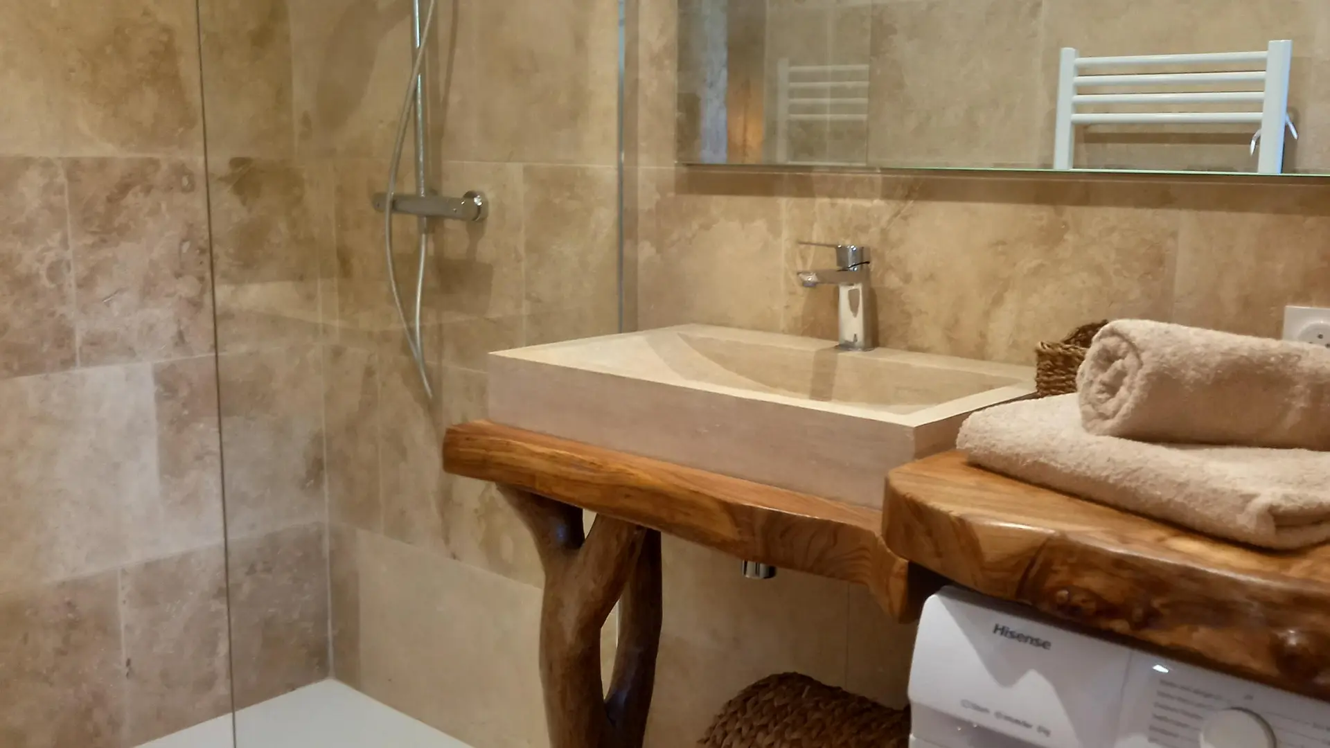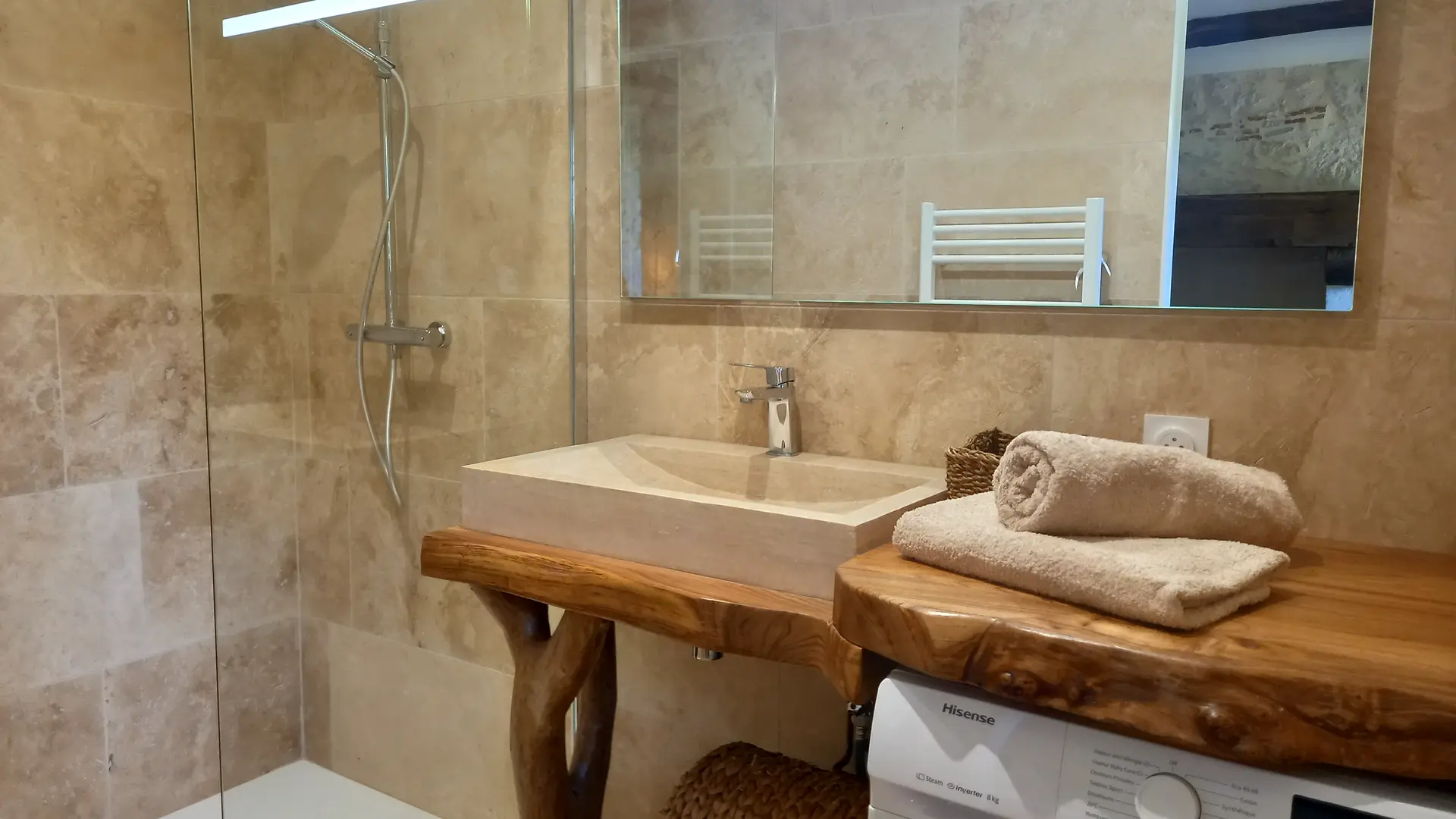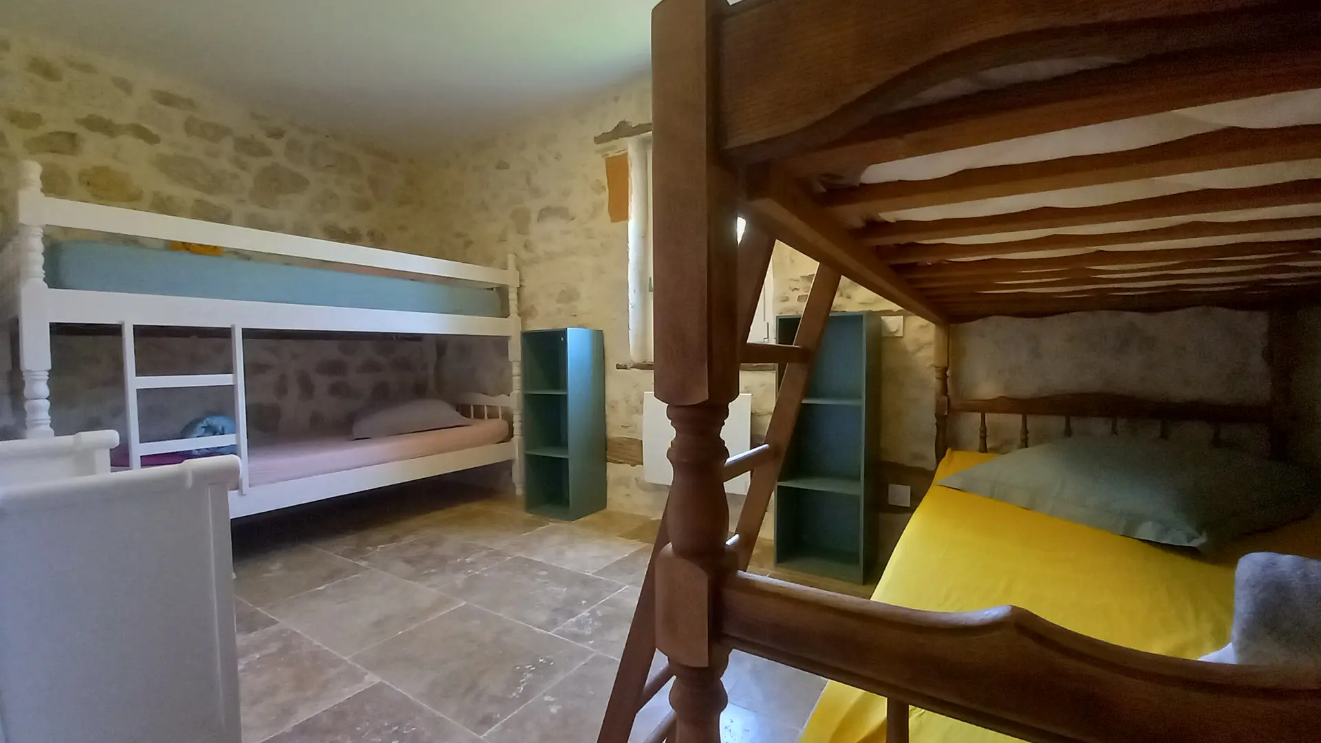 The accommodation consists, on the ground floor, of a bedroom with a 160x200 bed and its private bathroom, a second bedroom with a 160x200 bed, as well as a dormitory room equipped with 4 90x190 beds. You will also find a bathroom and separate toilets.