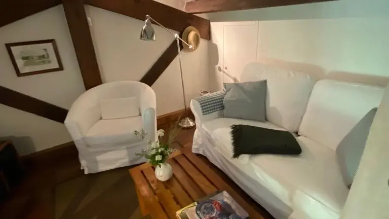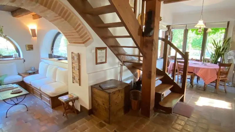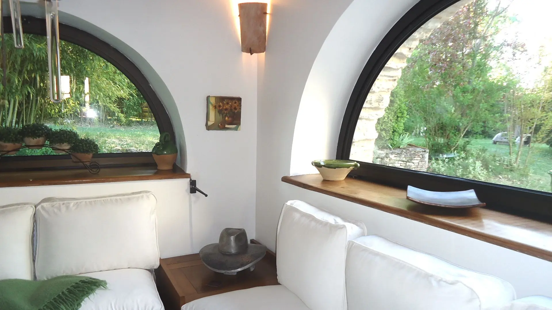 In the countryside, self-contained, unusual accommodation in a pigeon house, ground floor: living room (fireplace) with built-in kitchen area (MO oven, LV, LL), sitting room, WC (washbasin), 1 bedroom (1 double bed) with shower room. 1st floor: mezzanine lounge (1 sofa, 1 armchair, TV), 1 corner bedroom (1 corner bed 80x180). 2nd floor: 1 bedroom (1 x 120cm bed, washbasin). Private terrace (25 m2). Unenclosed private park (3000 m2). Heating: gas underfloor heating (10 Euros/night). Optional: cleaning. Price includes: bed linen, towels and wood. Wifi internet connection. Tourist tax extra.