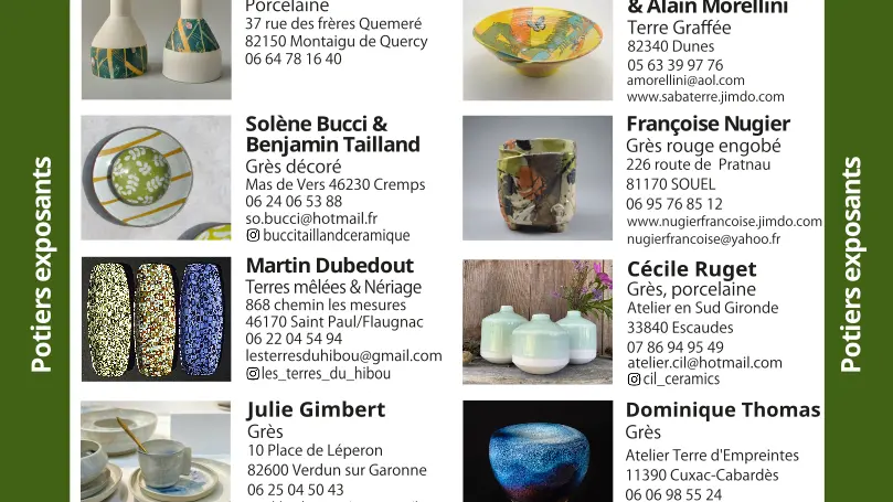 In a boutique in the heart of Moissac, 12 potters from the South-West of France take turns welcoming you to discover the diversity of their ceramic creations: stoneware, porcelain, raku, glazed earthenware, sigillata, from tableware to sculpture. Between May and September, 4 guest ceramists from France and abroad, plus 6 guest ceramists from the Terres Neuves du Sud-Ouest association, complete this snapshot of contemporary ceramics.