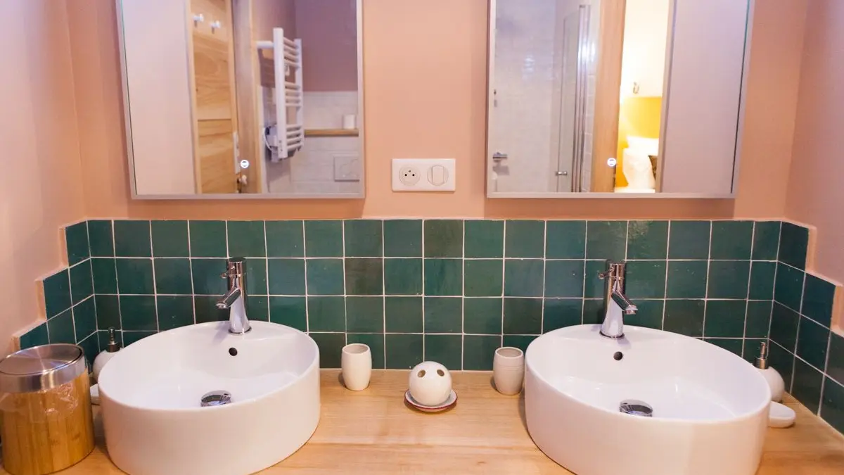 Upstairs, 2 bedrooms with 1 bed 160x200 each, sharing a bathroom with private WC. 1 bedroom 1 bed 160x200, private bathroom and WC. 1 bedroom 1 bed 120 and 2 bunk beds in 90 and 1 bedroom 2 beds 80x200 close with bathroom access' bath and shower) and independent wc. TV lounge upstairs giving on access staircase.