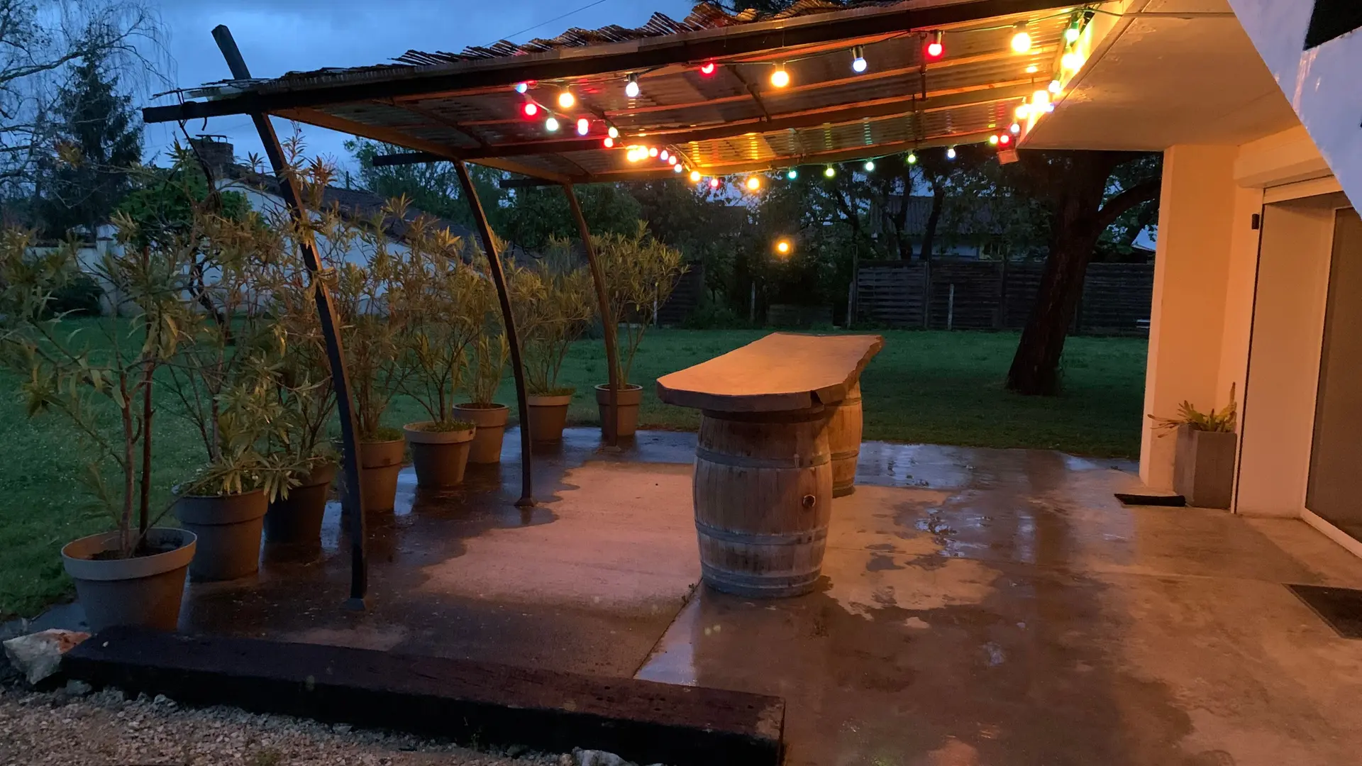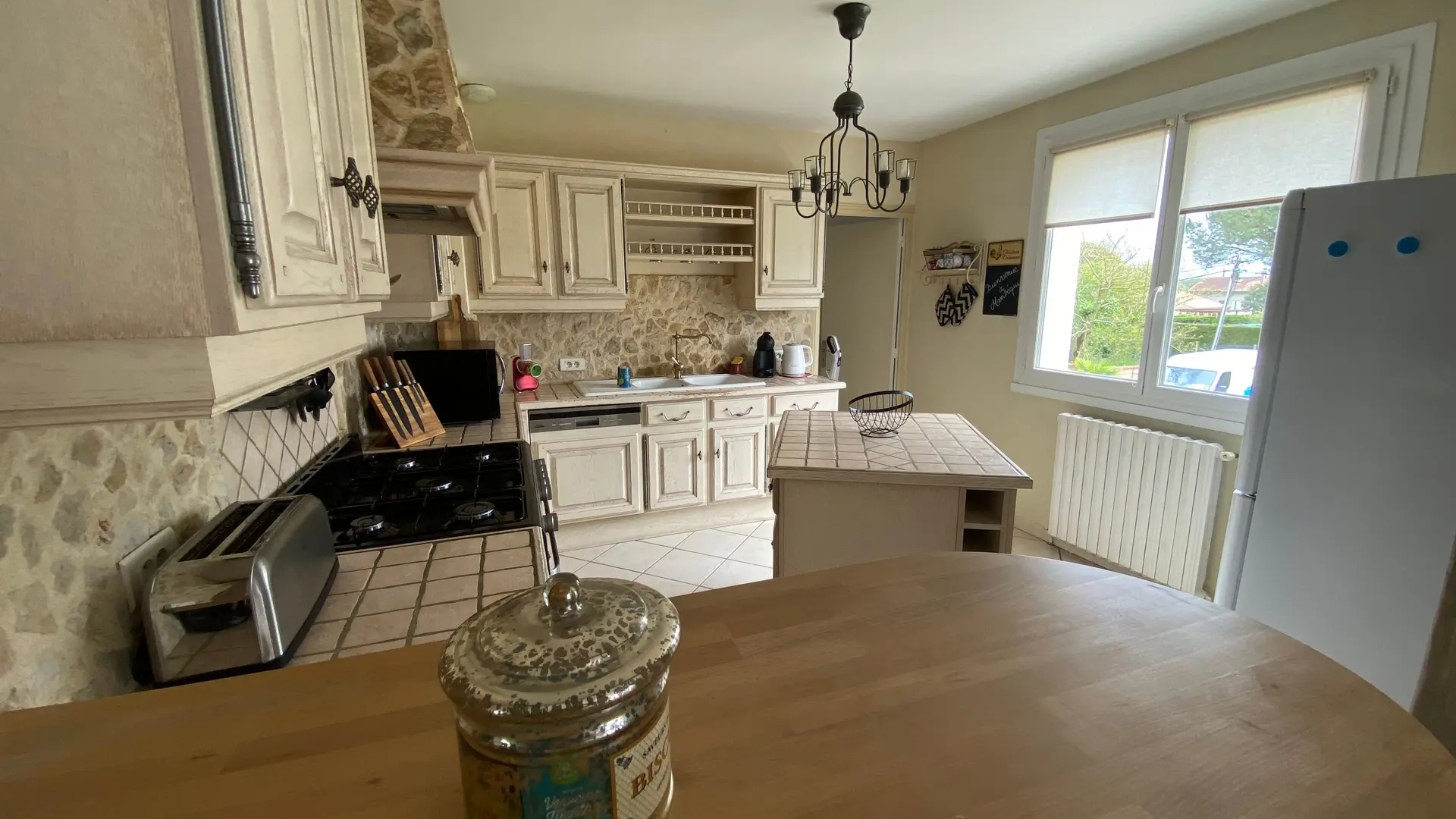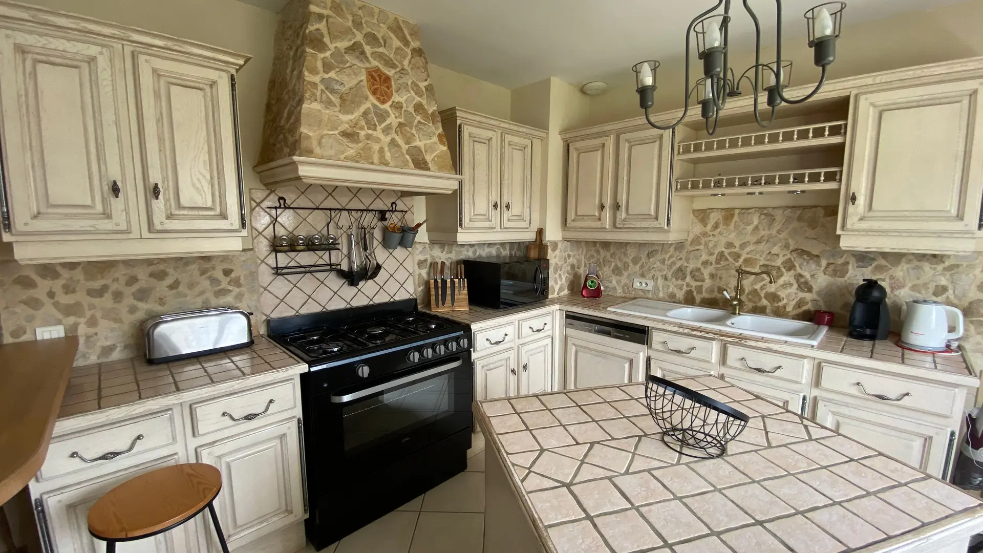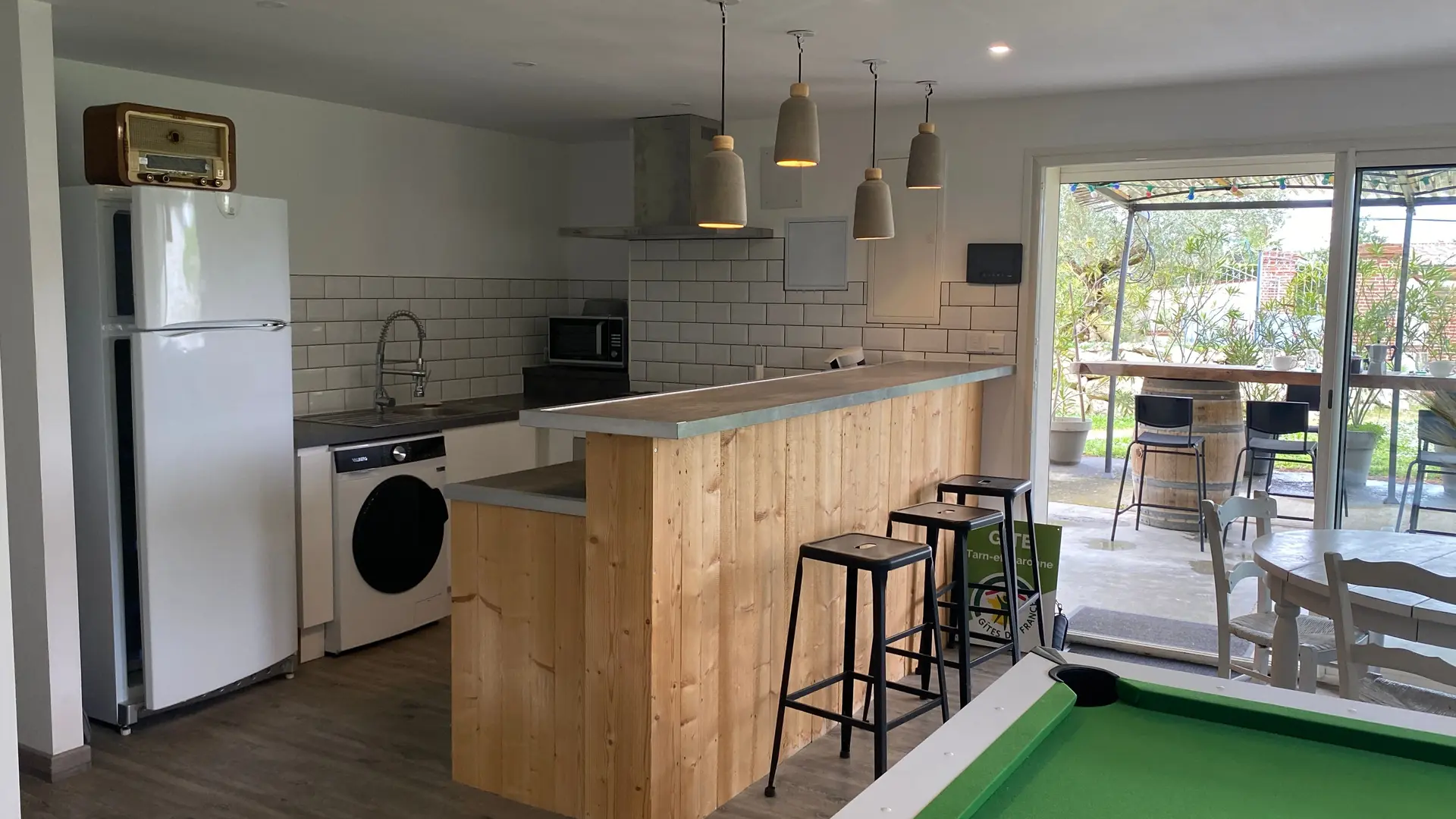 The accommodation comprises two interconnected areas, on the ground and ground floors, with all modern comforts. On the ground floor, there is a living room with a fitted kitchen (fridge-freezer, hob, oven, washing machine), table and chairs, corner sofa and TV. A bedroom (2 x 0.90cm beds), a bedroom (1 x 140cm bed) and a huge shower room with wc. Via an internal staircase and another external staircase, the 1st floor offers a large living room with fireplace (TV insert), corner sofa, dining area (table and chairs), and integrated kitchen area (cooking facilities, dishwasher, oven, microwave, fridge). Two bedrooms (2 single beds), one bedroom (1 double bed), shower room and separate wc. Balcony on first floor. Covered pergola with garden table and stools, string lights. Wifi throughout. Bed linen, towels and household linen provided and included in the price. Wood for the fireplace provided. Charcoal barbecue. Fenced garden with trees and gate. Bicycles can be stored at the rear.