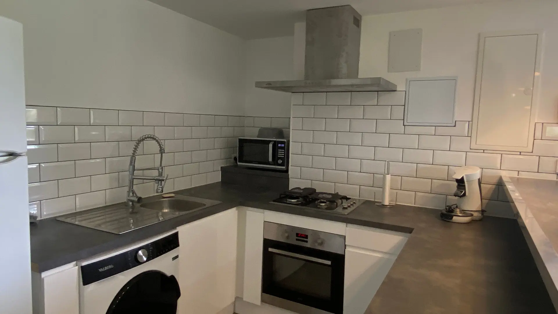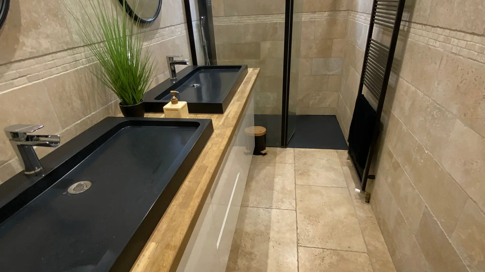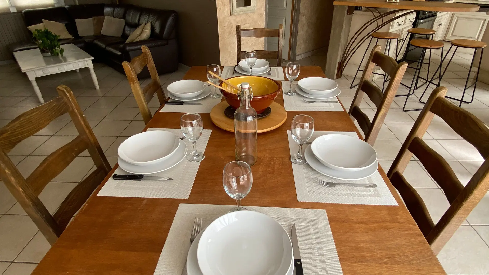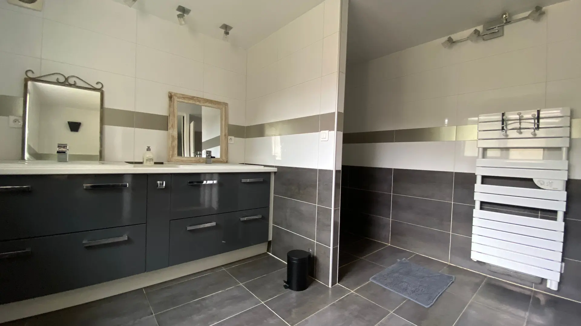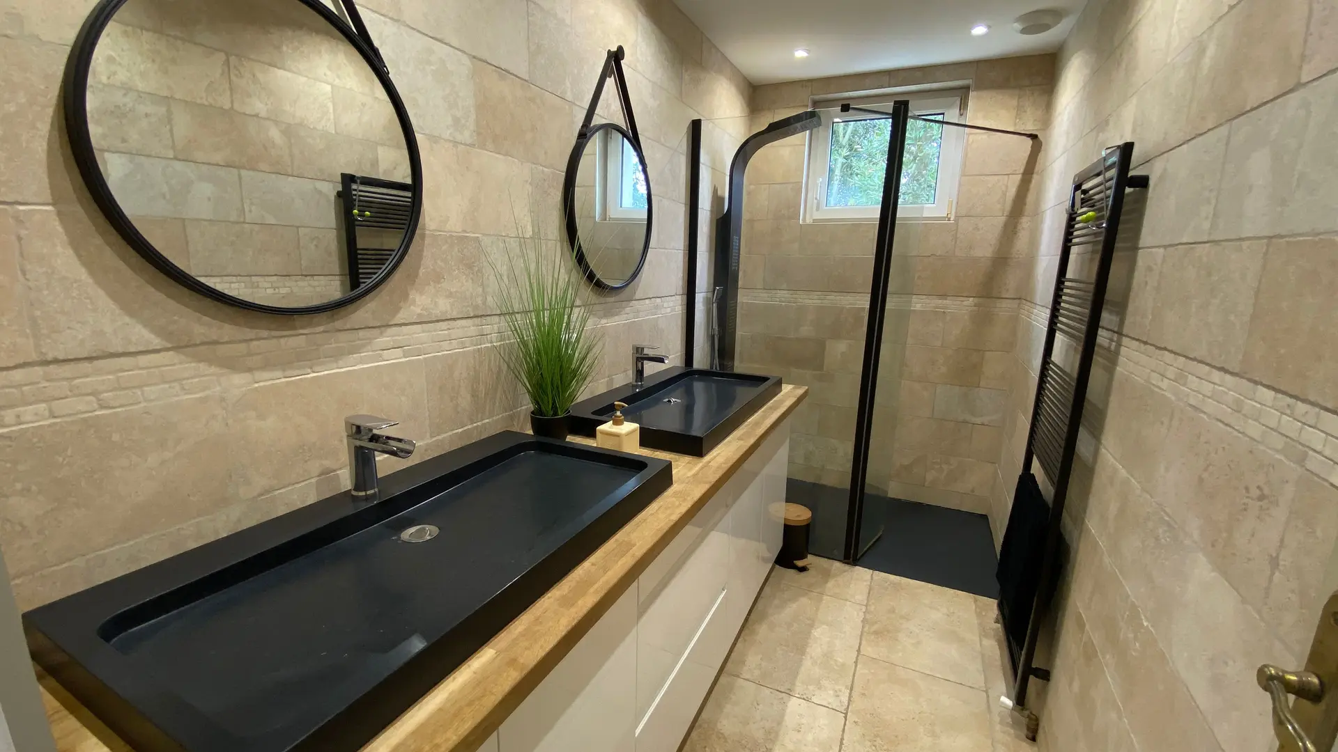 The accommodation comprises two interconnected areas, on the ground and ground floors, with all modern comforts. On the ground floor, there is a living room with a fitted kitchen (fridge-freezer, hob, oven, washing machine), table and chairs, corner sofa and TV. A bedroom (2 x 0.90cm beds), a bedroom (1 x 140cm bed) and a huge shower room with wc. Via an internal staircase and another external staircase, the 1st floor offers a large living room with fireplace (TV insert), corner sofa, dining area (table and chairs), and integrated kitchen area (cooking facilities, dishwasher, oven, microwave, fridge). Two bedrooms (2 single beds), one bedroom (1 double bed), shower room and separate wc. Balcony on first floor. Covered pergola with garden table and stools, string lights. Wifi throughout. Bed linen, towels and household linen provided and included in the price. Wood for the fireplace provided. Charcoal barbecue. Fenced garden with trees and gate. Bicycles can be stored at the rear.