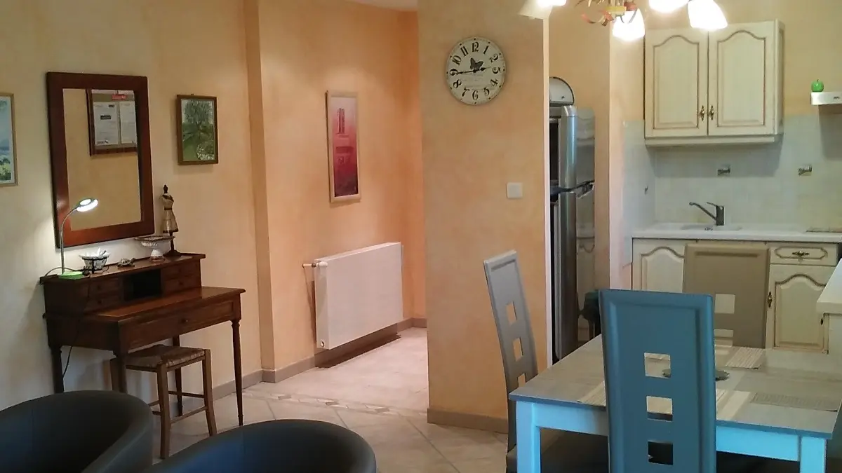 He is adjoining the owner's house but completely independent. On one level, it includes, the living room with kitchen and the dining area and the living room with the convertible sofa (for 2 people), the bedroom (1 bed 140) and the bathroom with wc.loisirs Nearby: fishing: 2 km, hikes (dolmens), swimming pool
