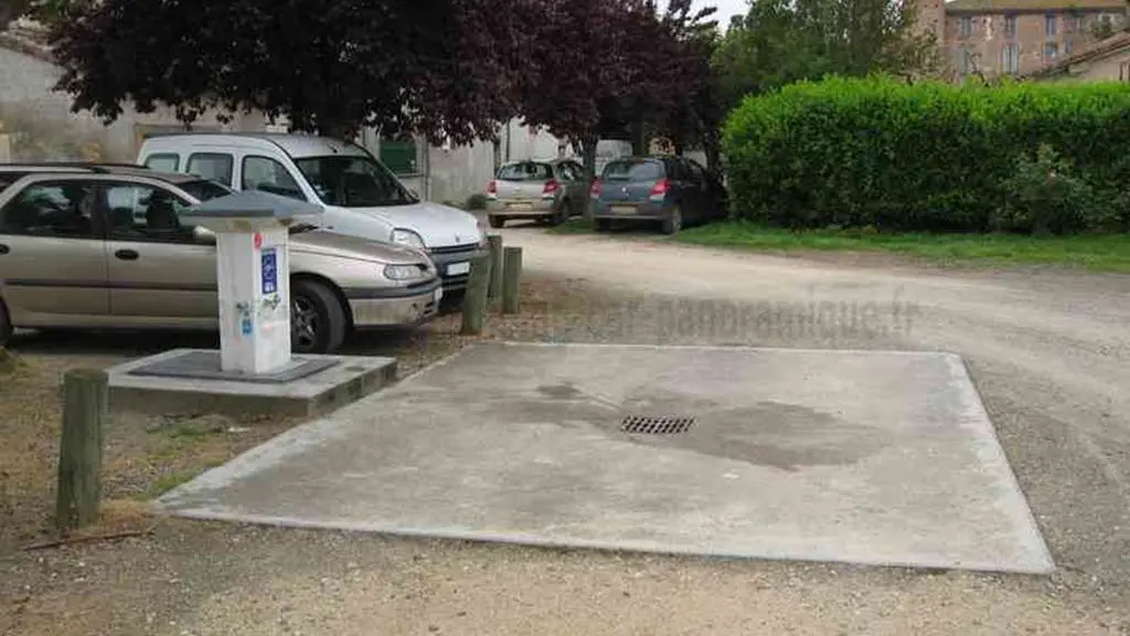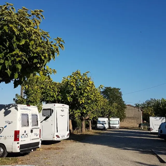 Between Moissac and Valence d'Agen, the service area for motorhomes of St Nicolas de la Grave is near the castle, located in the village center, place des Sahutiers