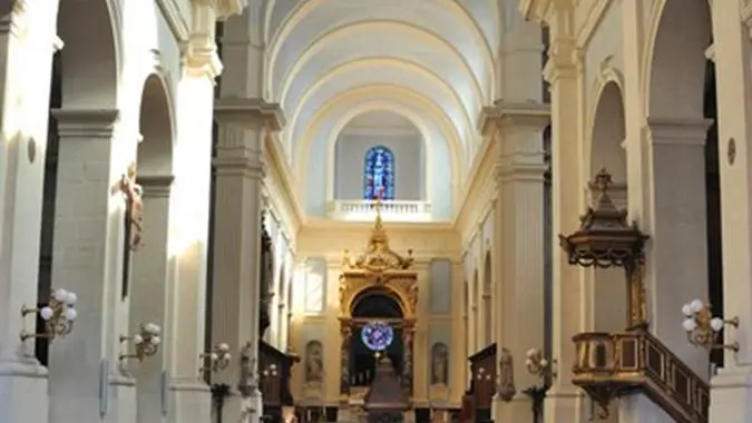 The interior contrasts sharply with the aesthetics of the Saint-Jacques church: the tall windows, adorned with white glass, flood the nave with light, further accentuated by the light-colored whitewash on the walls. The cathedral houses remarkable furnishings, including a walnut organ (17th century), an 18th century pulpit, and a Napoleon III canopy (19th century). In the north arm of the transept, one of Ingres's major works, The Vow of Louis XIII (1824), is enthroned.