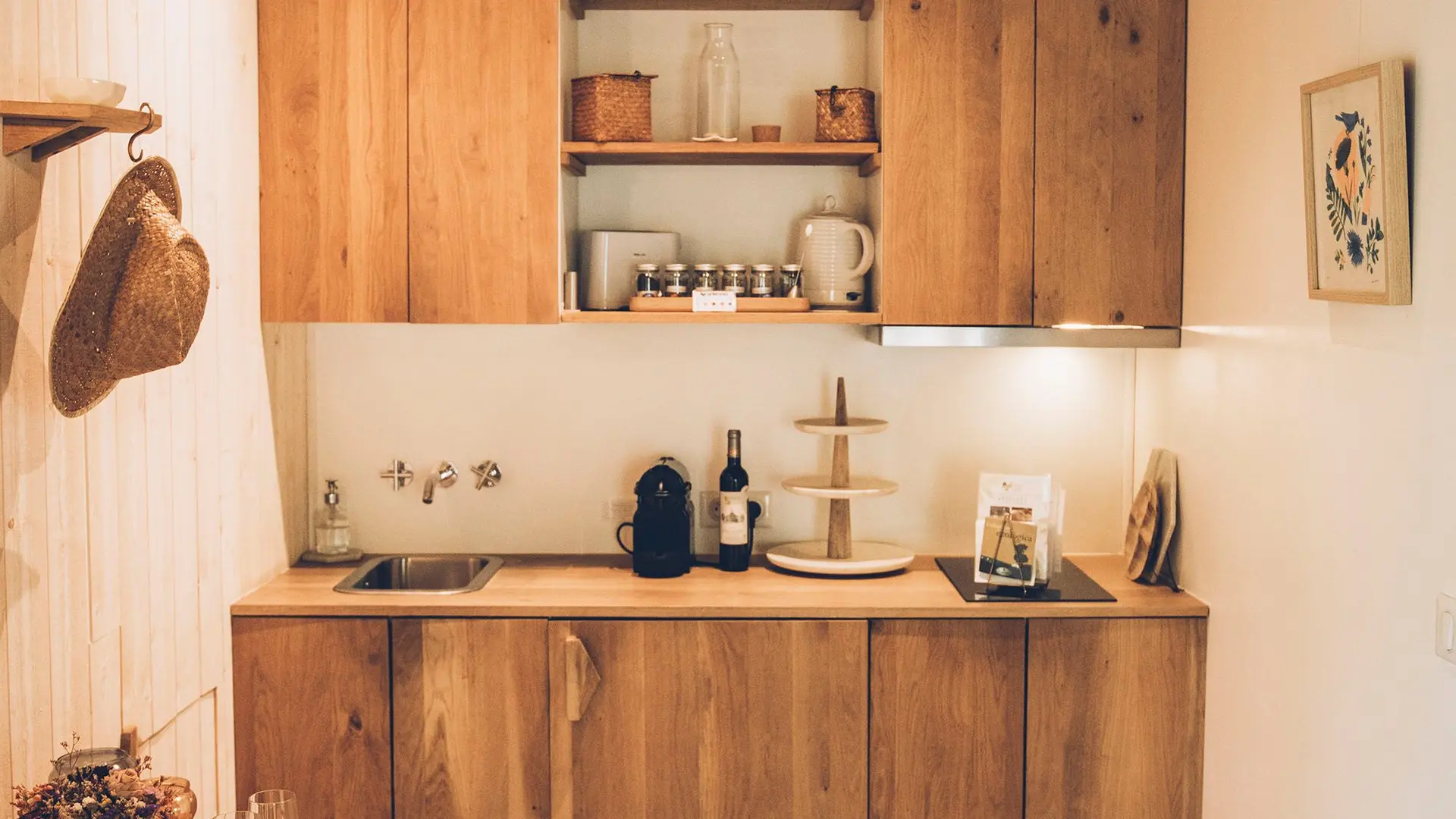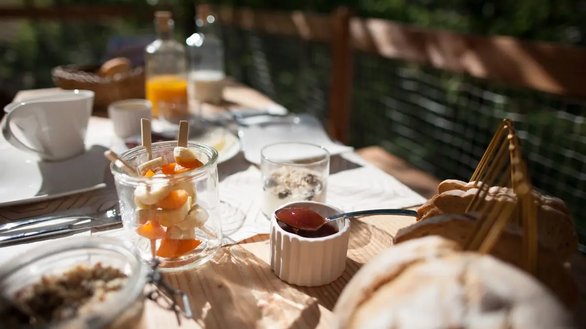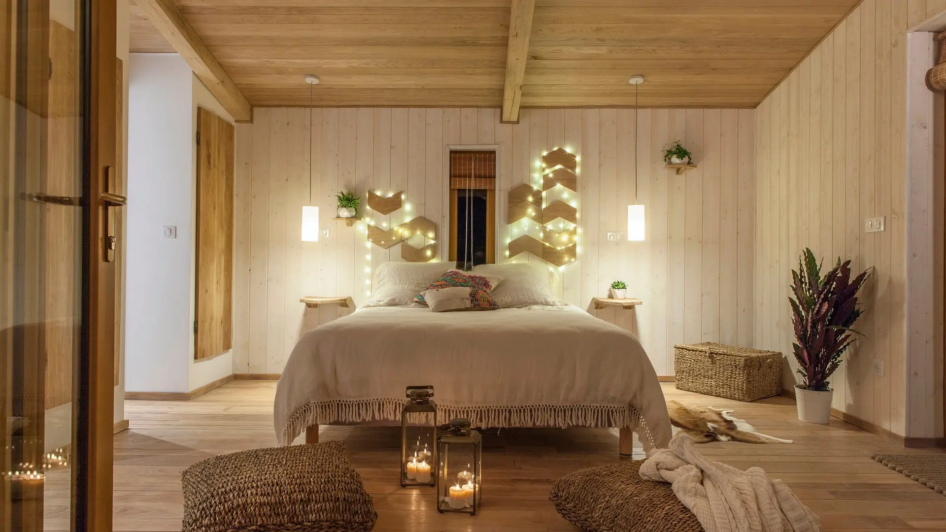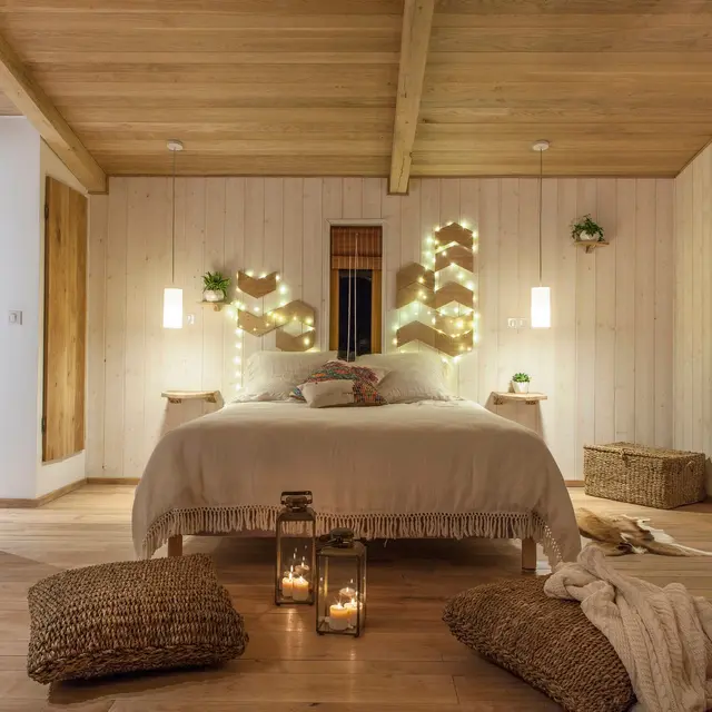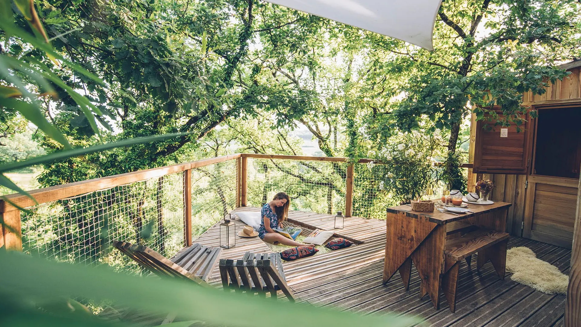Treehouse layout: one large bedroom (1 x 160x200 bed), kitchen unit with built-in units, wood-burning stove, terrace with ornamental furniture and private Nordic bubble bath. From the terrace, access to the private sauna in a separate room that can be used as an extra bedroom (2 x 70cm beds). Access to the owner's swimming pool and tennis court 100 metres away.