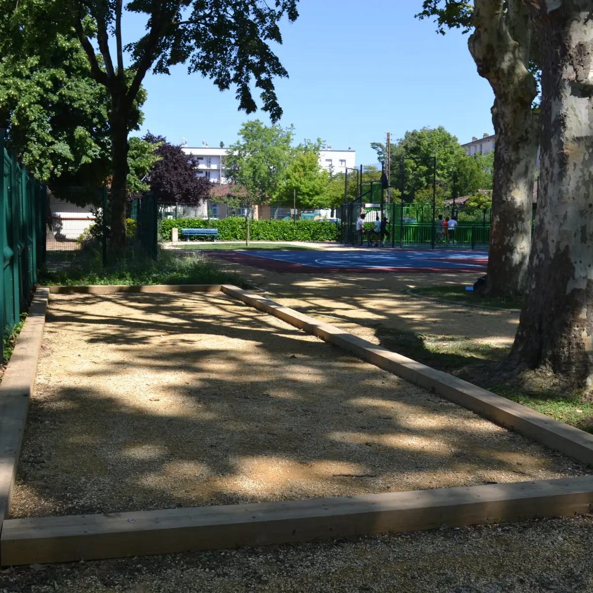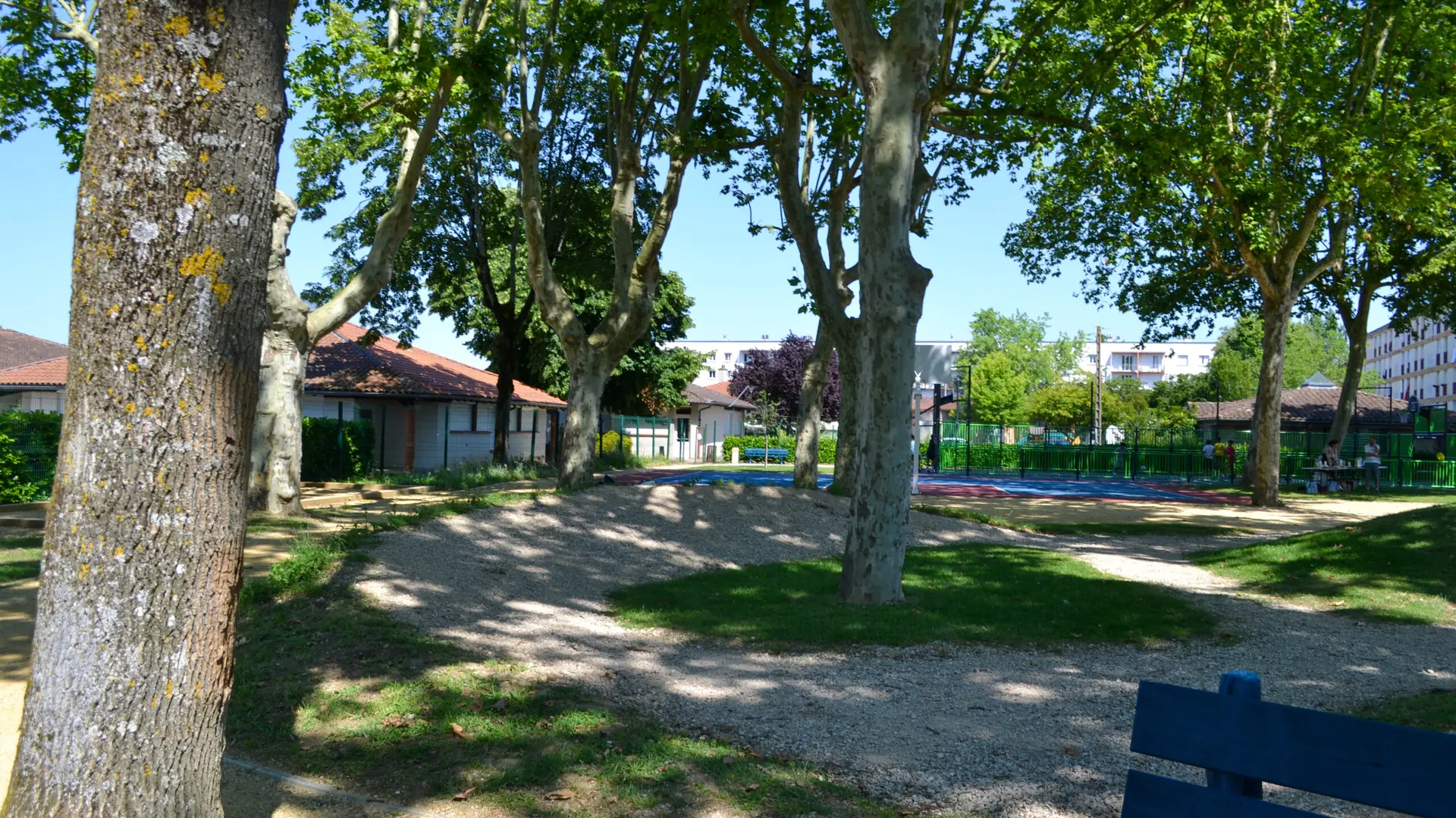 The grounds include a multi-purpose sports field, a 3×3 basketball court, a BMX track and a pétanque court.