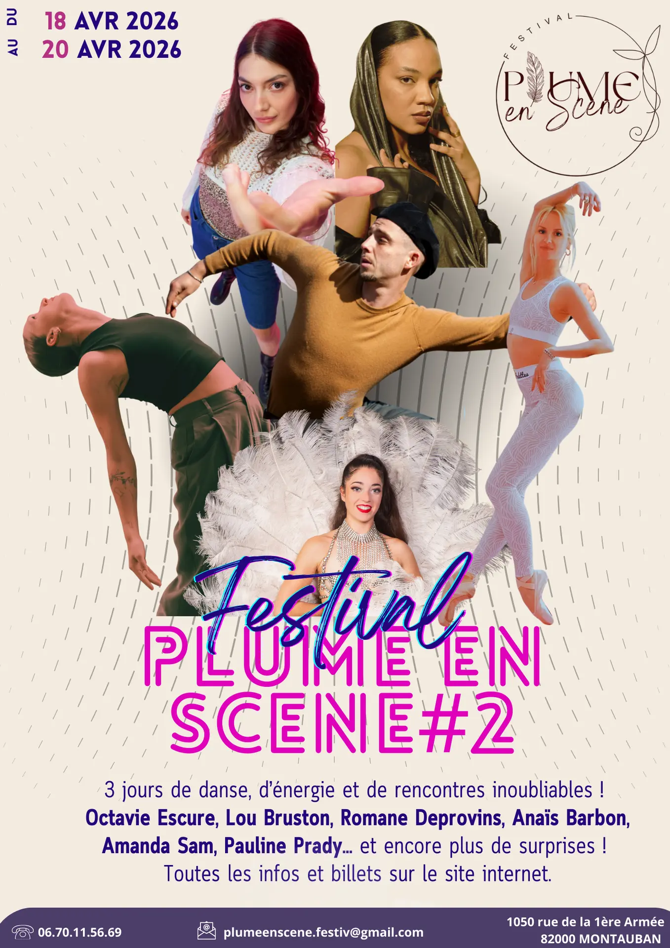 Plume en Scène Festival #2 – From April 18 to 20, 2026 in Montauban. Three days dedicated to dance and artistic creation: workshops, meetings, and performances with artists of diverse styles. An unmissable cultural event.