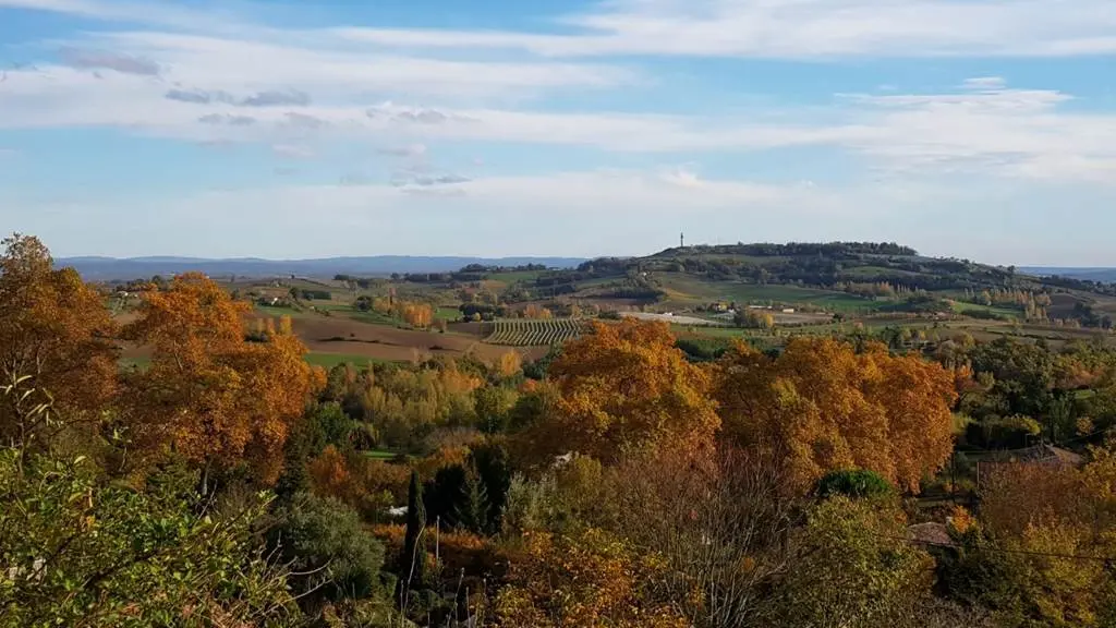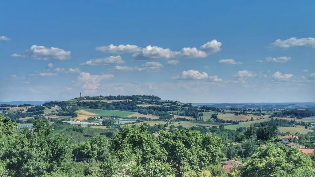 From the small park, there is a breathtaking view of the Quercy Caussadais hillsides and the Montalzat water tower...