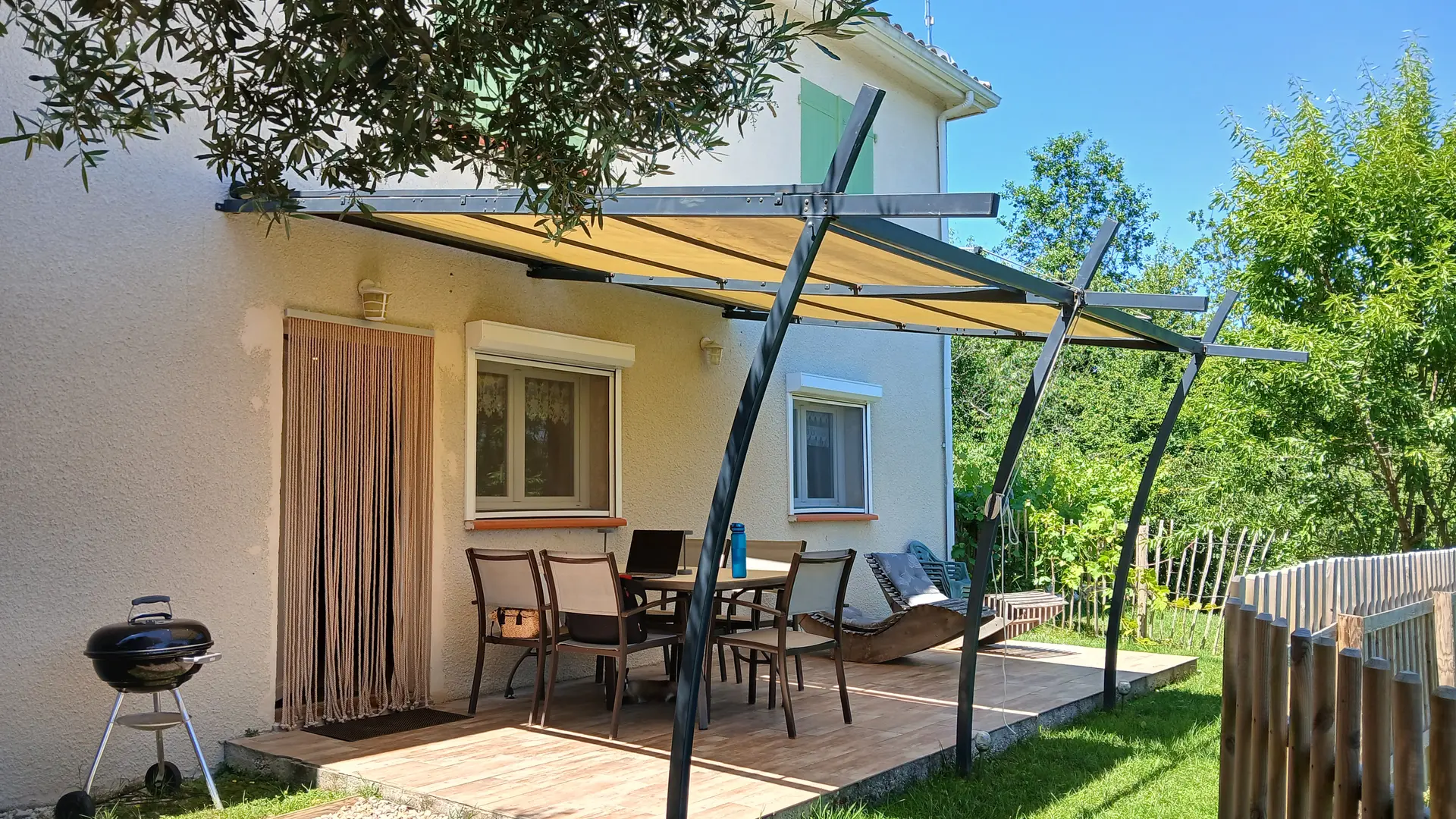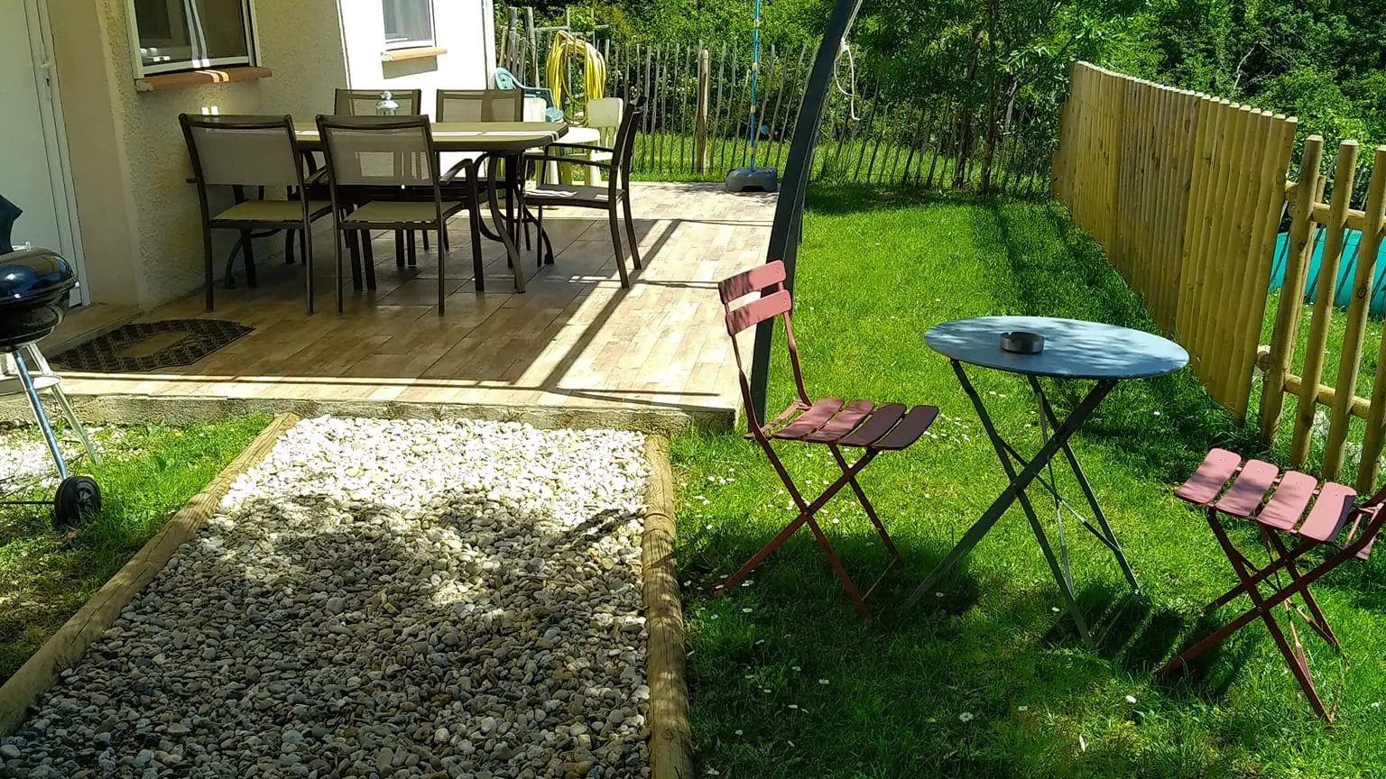 The cottage has a private location at the back of the house, including a terrace and a garden without vis-à-vis. You will find a garden furniture with deckchairs, a barbecue, all shaded thanks to the pergola. A Nordic bath is at your disposal for optimal relaxation as well as outdoor games for children.