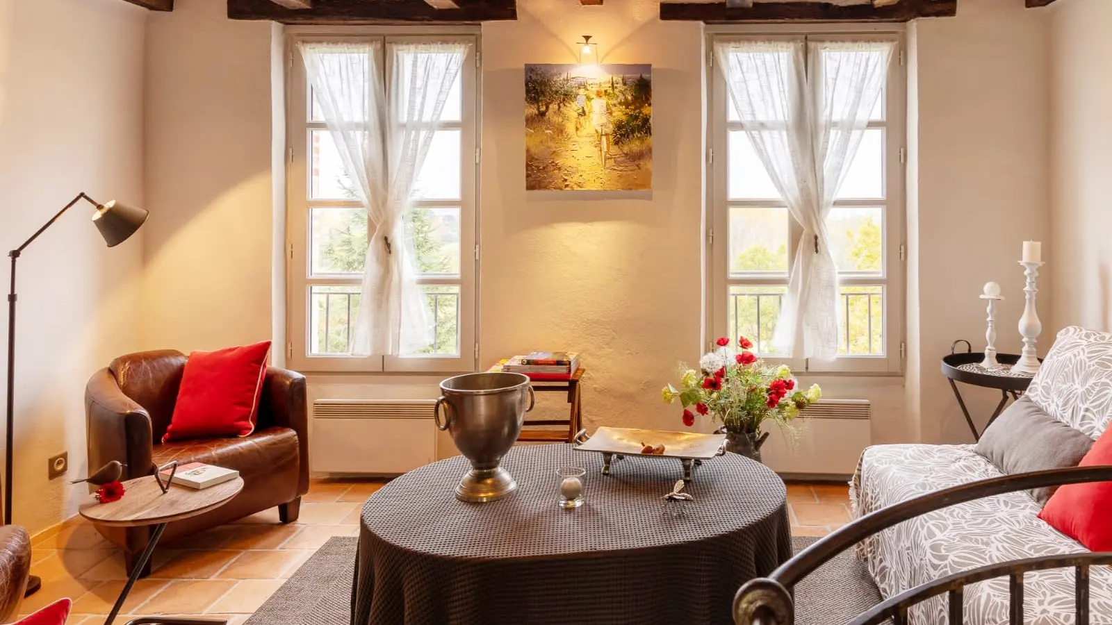 Sweetness of a cocooning living room in perspective in this atypical place. 60 m², located in the countryside, overlooking the "Barguelonne" river valley.