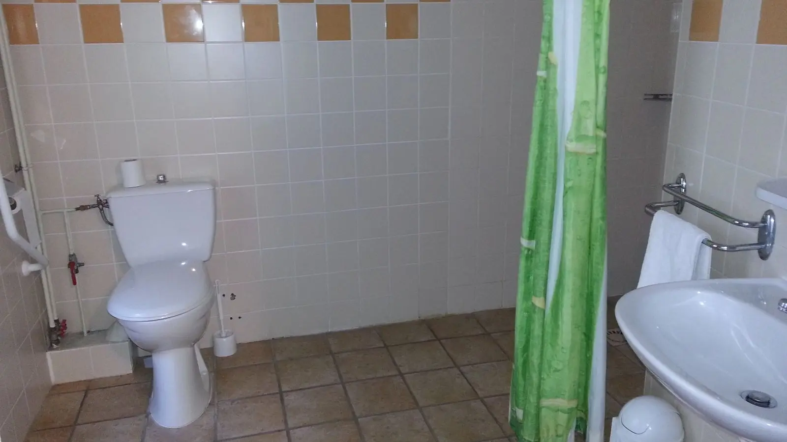Sanitary Block: the cottage also features a sanitary block with two showers, two WC, and four washbasins. An additional sanitary facility, accessible to people with reduced mobility, is equipped with a shower, washbasin, and WC.