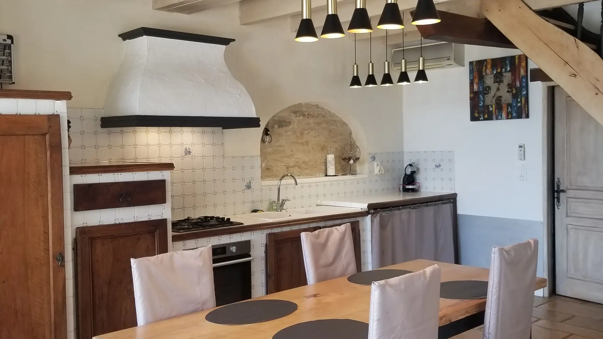 On the ground floor: living room with integrated kitchen area (MO, LV, LL, SL) Air conditioning, 1 hp (2x90, bathroom), wc. On the 1st: living room (sofa, armchairs, DVD player), 1 hp (1 bed 160, bathroom/wc), 1 hp (1 bed 160, bathroom with WC). Covered shelter with 2 garden lounges. Barbecue. Arbor. Portico. Electric heating. Baby bed umbrella available. . Internet access (4G key). Animal package supplement (30 euros/animal/week). Optional: cleaning, sheet rental ,. In addition: Tax of stay by adult per night.