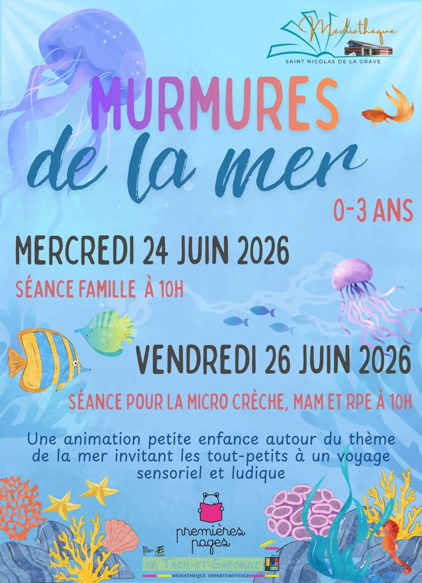 Tras el espectáculo de Premières Pages "Zélie ou la pluie" (Zélie o la lluvia) en marzo, la mediateca propone ahora una nueva iniciativa para fomentar la lectura y la sensibilización cultural de los más pequeños. En colaboración con la Médiathèque départementale de Tarn-et-Garonne.