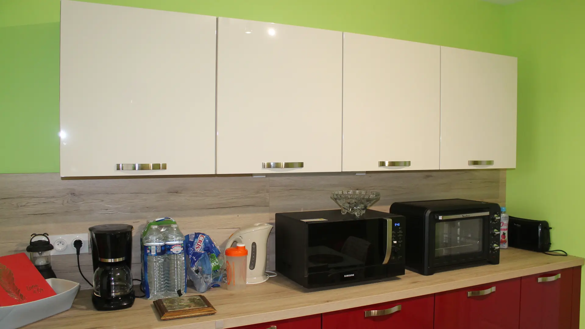 Una cocina equipada: nevera-congelador, cafetera, horno pequeño, microondas, vajilla ...) está disponible.