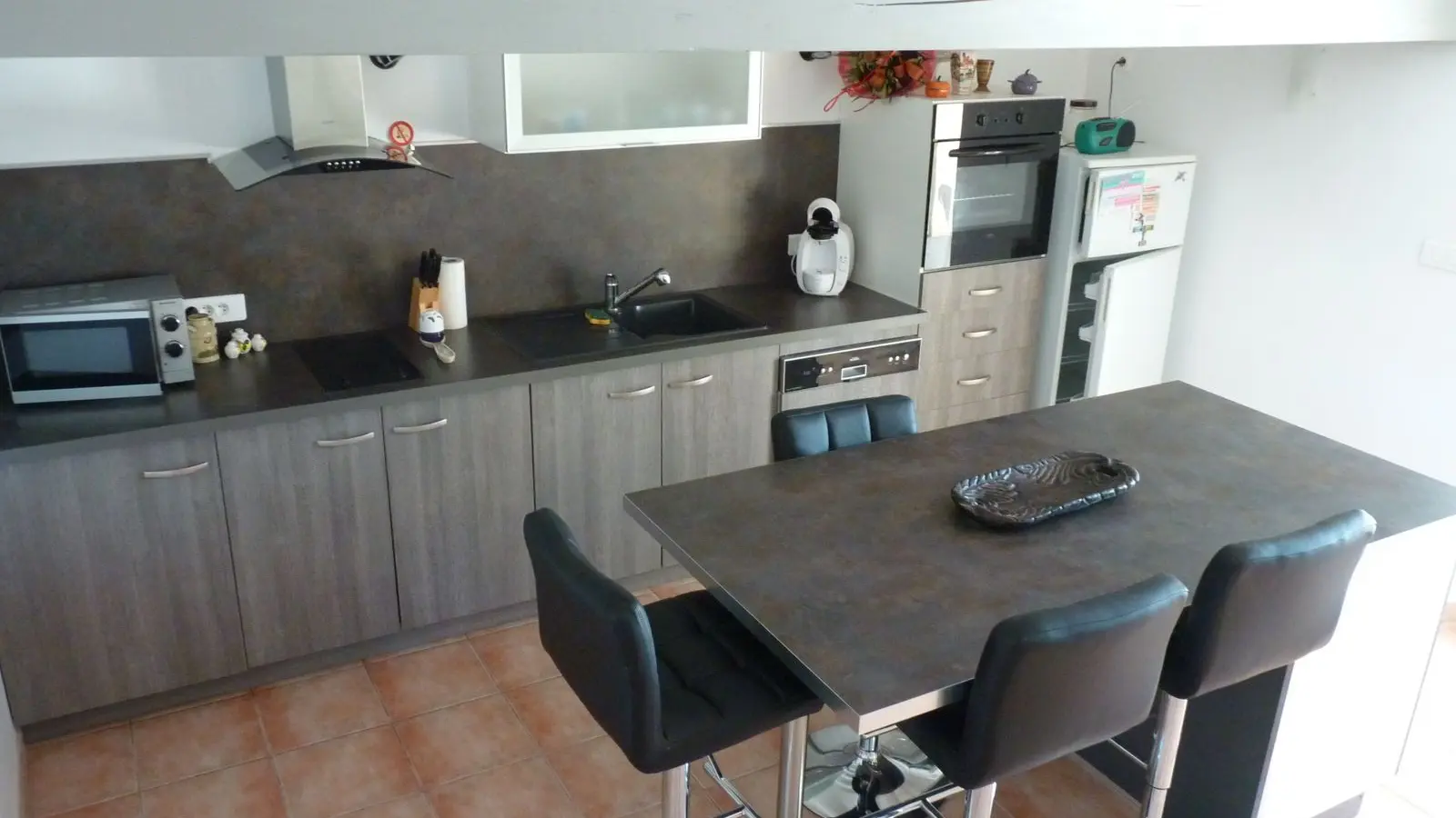 En el nivel del jardín, una cocina totalmente equipada (LV, MO), un comedor con área de asiento (TV, sofá de esquina), WiFi de Internet, 1 WC. En el nivel 0 en el lado de la calle o 1 desde la cocina: 2 dormitorios, 1 dormitorio con 2 camas 120, 1 dormitorio con 1 cama 140 y vestidor. Un baño (caminata en la ducha, LL), 1 WC independiente, armario de almacenamiento. Hall de entrada. Un balcón de terraza y un lado de jardín, muebles de jardín, sombrillas, barbacoa. Jardín boscoso. Puerta eléctrica y puerta. Hojas y toallas proporcionadas, calefacción incluida.
