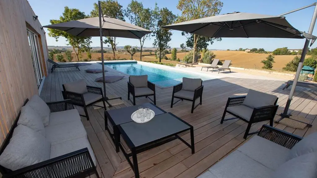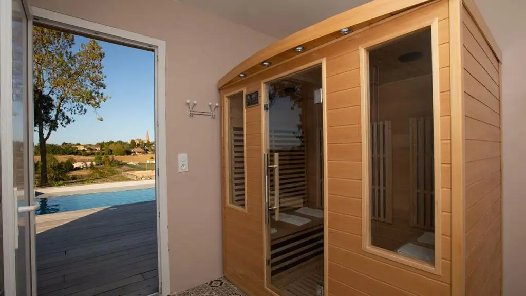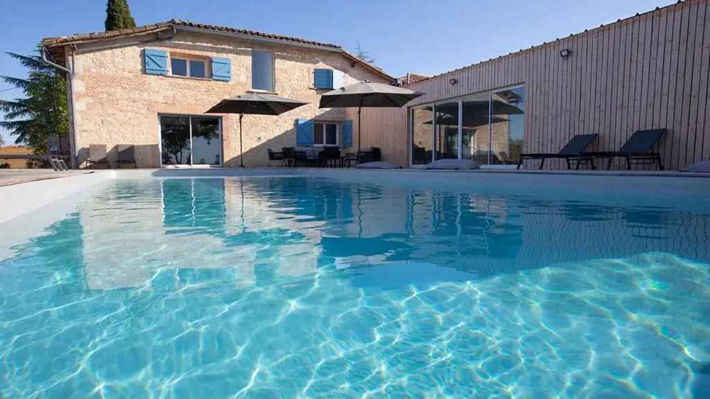Aquí "el espíritu familiar tiene una vista del pueblo de Faudoas, sus colinas y campos agrícolas. Cocina de verano acondicionada a lo largo de la playa junto a la piscina, piscina climatizada y jacuzzi noruego, sauna en el baño contiguo al piscina con wc. Suficiente para pasar unas vacaciones de ensueño aquí "como una familia". Casa de campo independiente, a 500 m del pueblo de Faudoas.