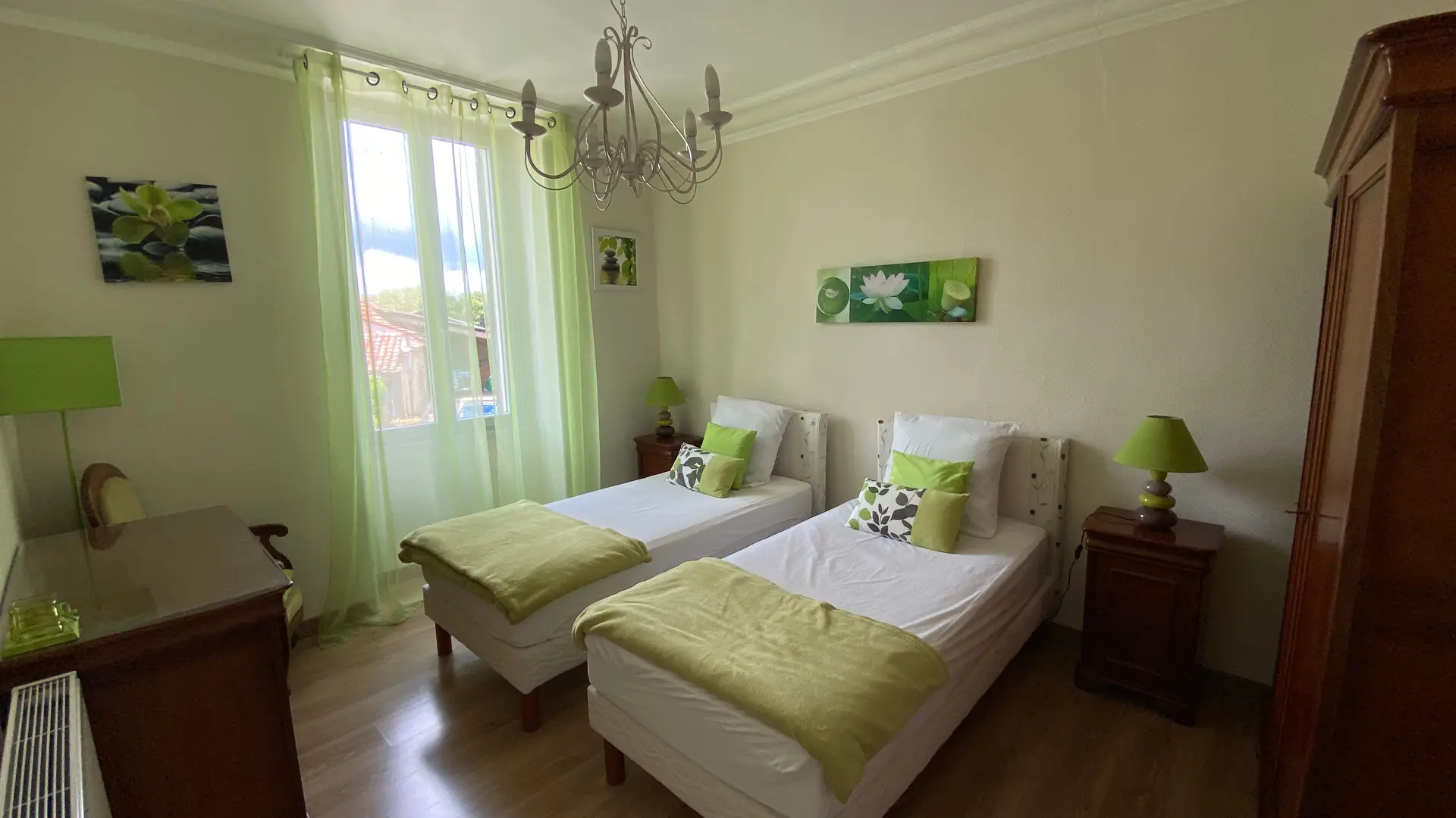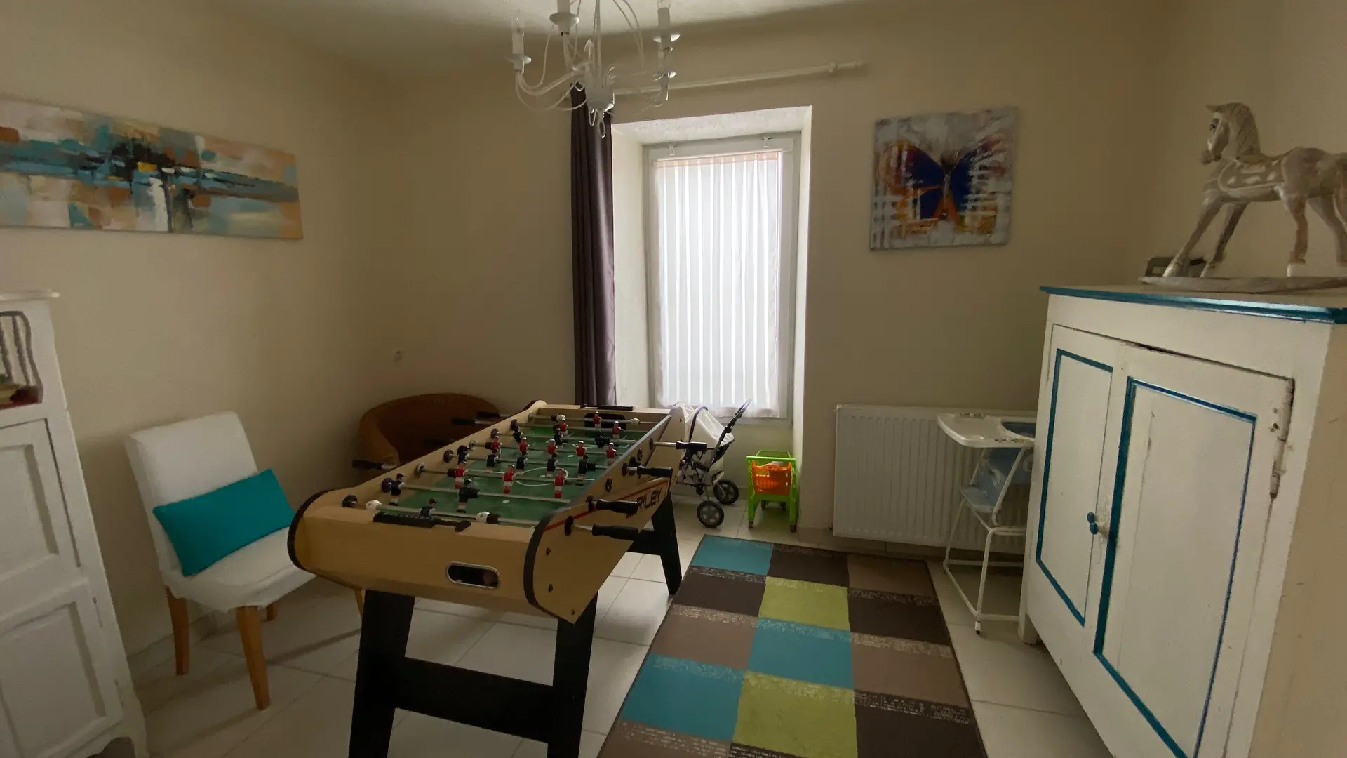 En el campo, cerca de la casa de los propietarios sin visas, la cabaña incluye en la planta baja: sala de estar (chimenea, televisión, sofá), comedor, cocina (elementos integrados (lavavajillas, micro olas, lavadora), baño con WC, 1 sala de juegos (fútbol de mesa). En el primer piso: 1 dormitorio (1 cama 140), 1 dormitorio (1 cama 160), 1 dormitorio (1 cama 140, 1 cama 90), 1 dormitorio (2 camas 90 hermanamiento), baño de baño con WC. Gran terraza con barbacoa, muebles de jardín. Tierras privadas cerradas (600 m2), jardín privado (300 m2). Terraza privada (40 m2). Conexión a Internet gratis (WiFi). Bomba de calor de calefacción (radiador). Opcional: alquiler de hojas, lino doméstico y de baño, limpieza.