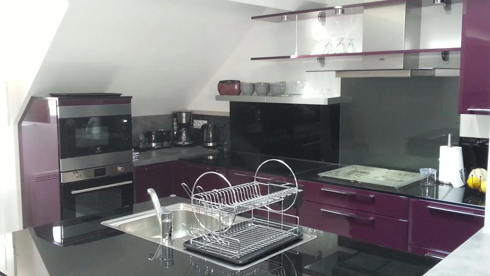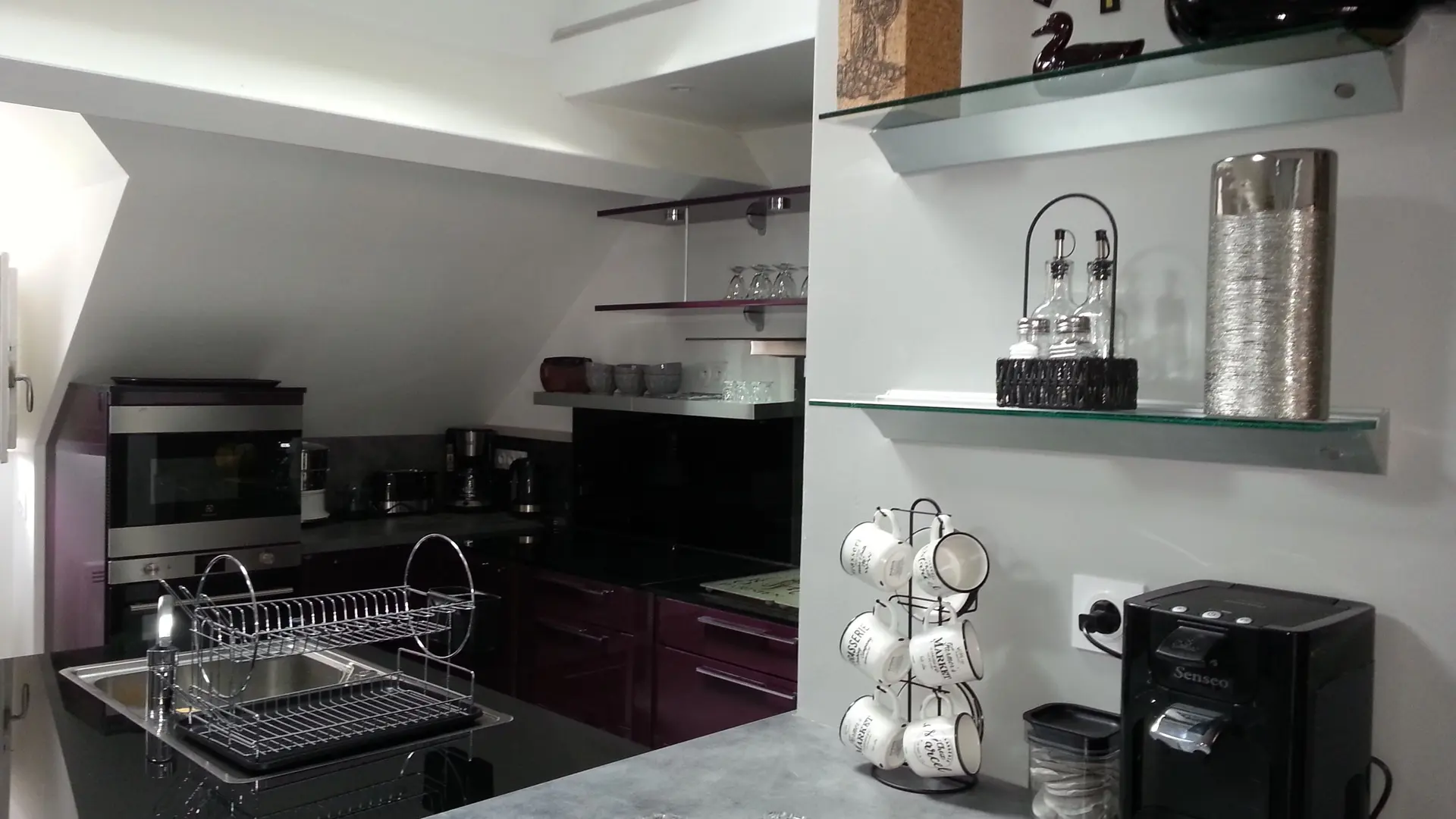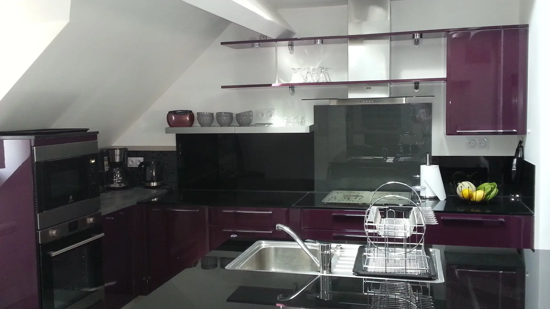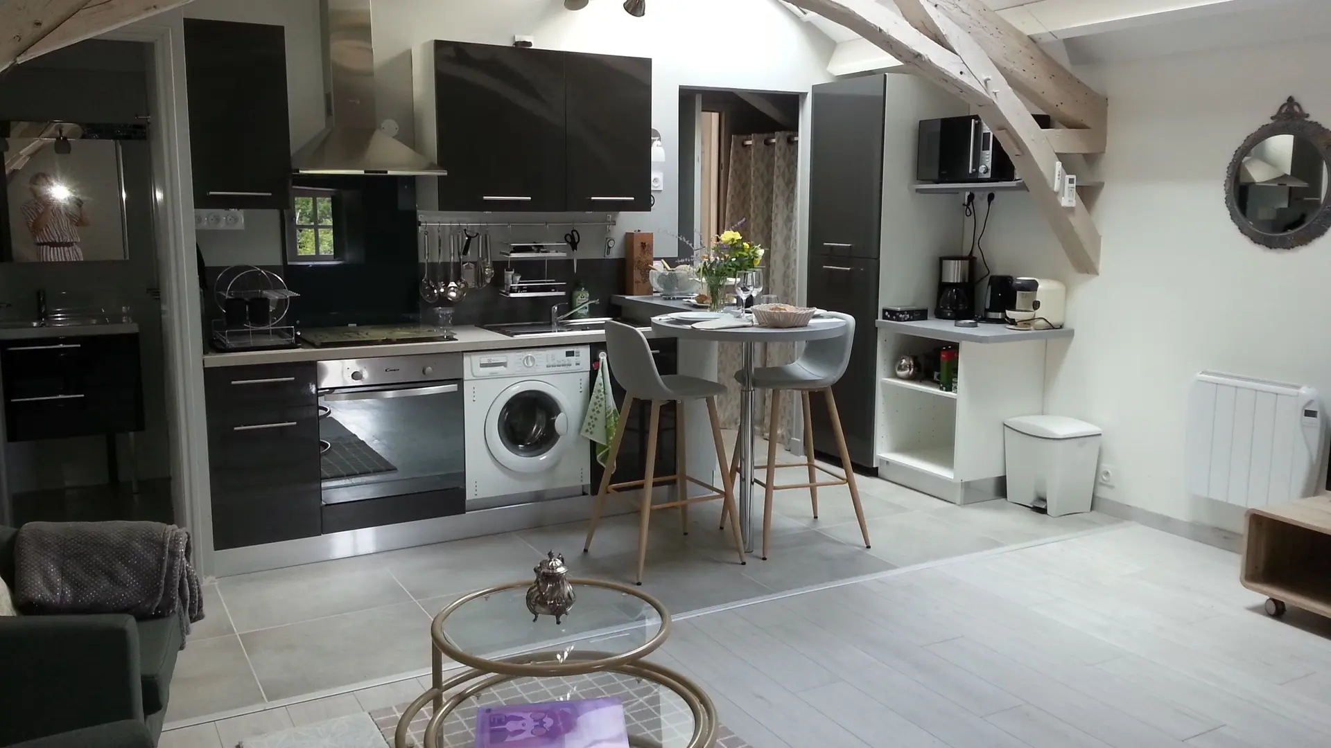 El loft incluye: una sala de estar con área de cocina (Elementos integrados LV Four Mo Refrigerator, congelador) y sala de estar frente a la chimenea de inserción, 2 sofás (TV, reproductor de DVD), un comedor (mesa y 6 sillas); Un armario técnico (lavadora, secadora), un inodoro independiente (lavado de manos y mesa de cambio de pared); Un dormitorio (1 cama 160 vestidor y 1 baño privado (1 cuenca, ducha), un dormitorio (2 cerca de 0.90 camas, vestidor y 1 baño privado (1 cuenca, ducha) y acceso a una terraza cubierta con una mesa de jardín , 6 sillas, barbacoa, 2 sillones, 1 mesa de café y un banco. En el nivel superior por una escalera de caracol, en entrepiso un espacio para niños con biblioteca, 2 sillones de café y una oficina).