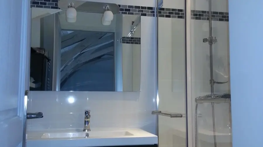 El estudio incluye: una sala de estar con área de cocina (refrigerador integrado Elementos LL Mo, congelador) y monedas de monedas (TV); un inodoro independiente (lavado de manos); Un espacio de dormitorio (1 cama 160 camerino) 1 baño privado. Wifi en todo el alojamiento. . .