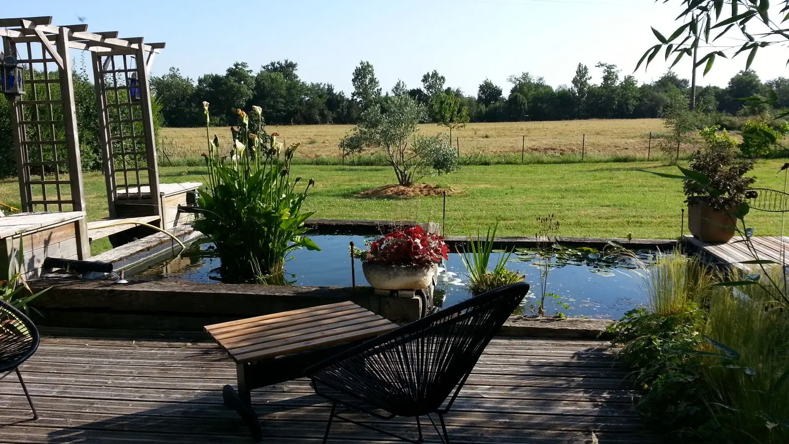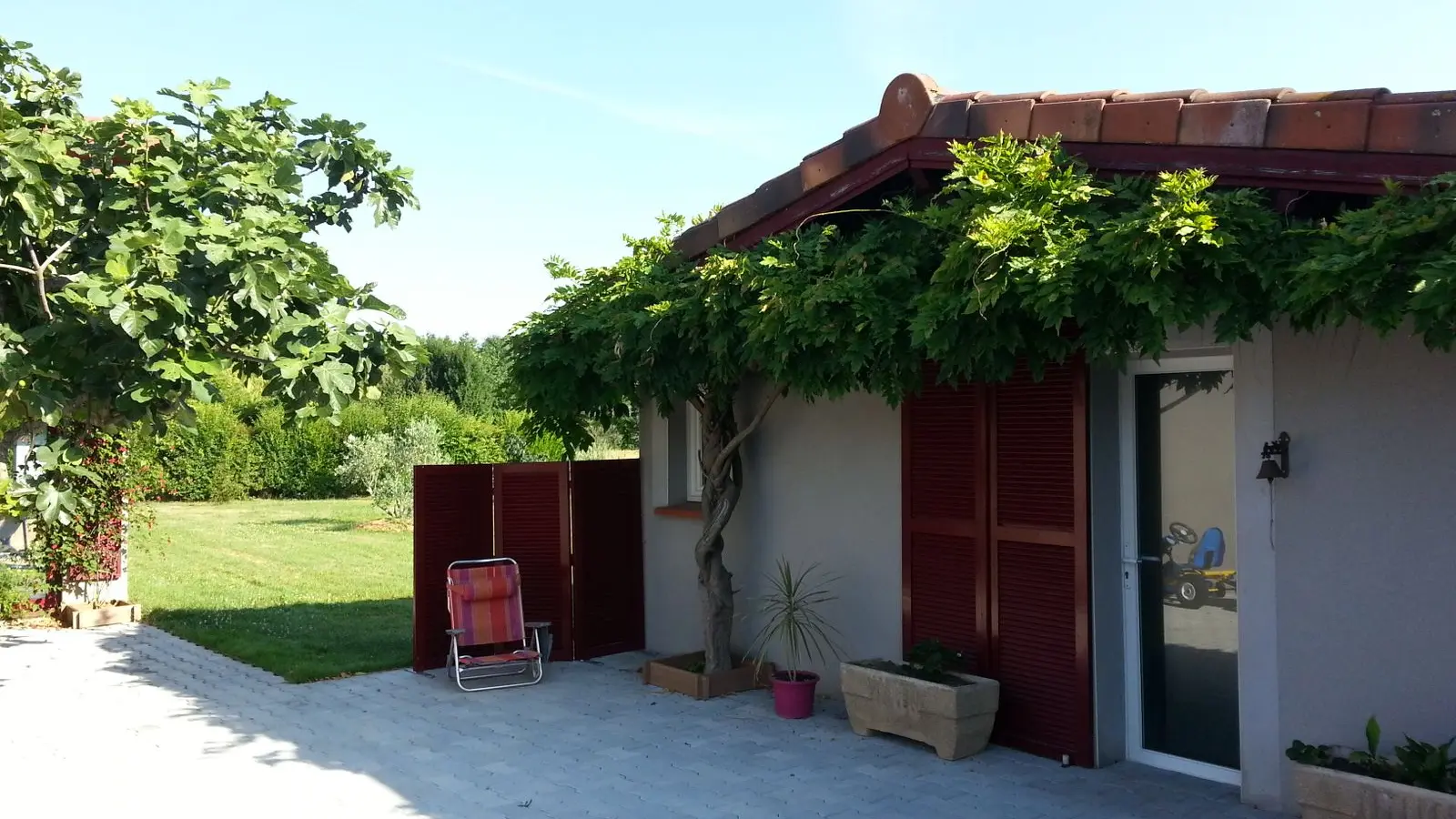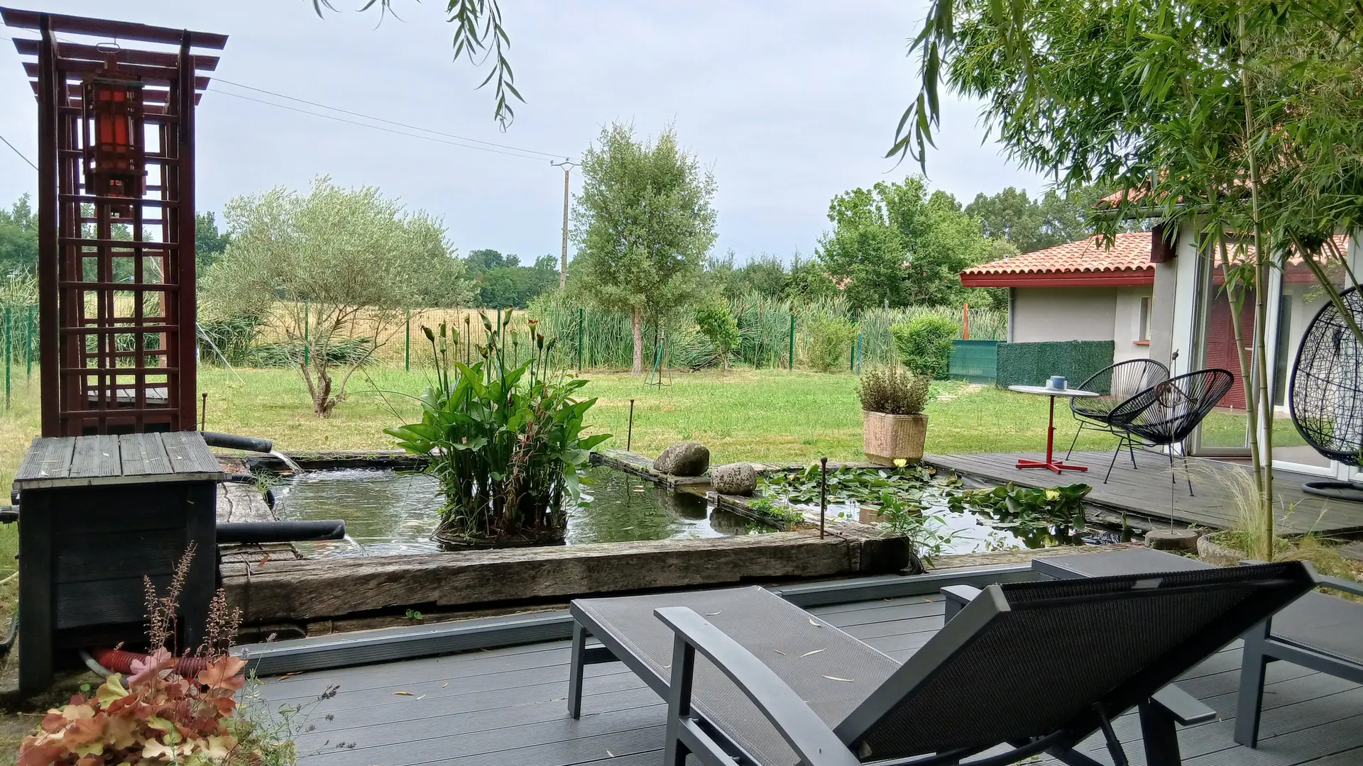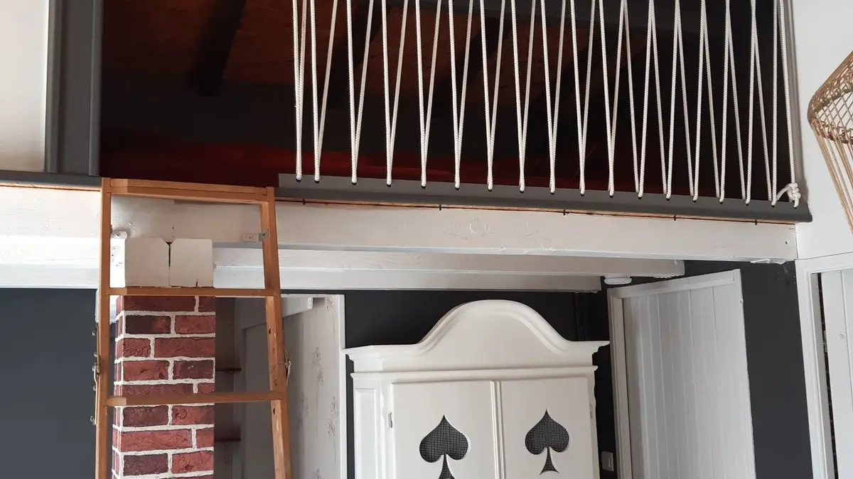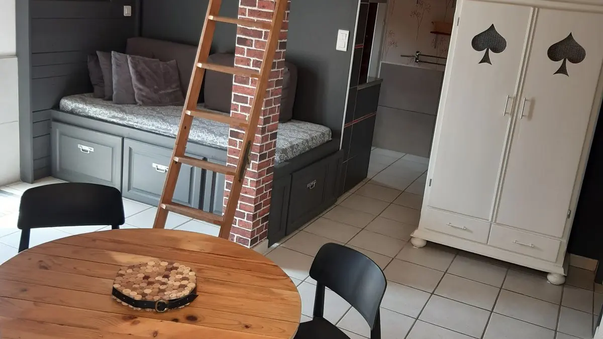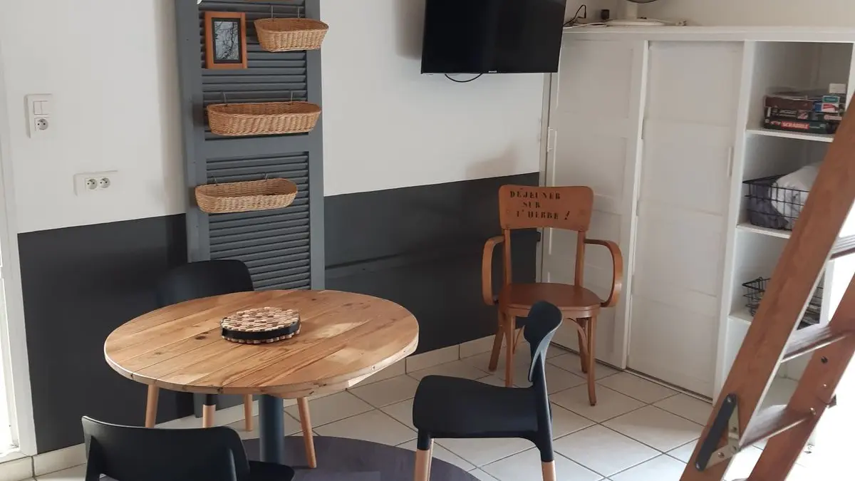 Este alojamiento completamente en la planta baja consta de una sala de estar (sofá 1 cama 0,90), TV, acceso a un entrepiso por escalera, 1 área de cocina (elementos integrados LL, horno combinado MO), 1 dormitorio ( 1 cama doble 140), 1 WC separado. Acceso a un espacio exterior con cocina de verano, plancha, estanque de peces, muebles de jardín, césped.