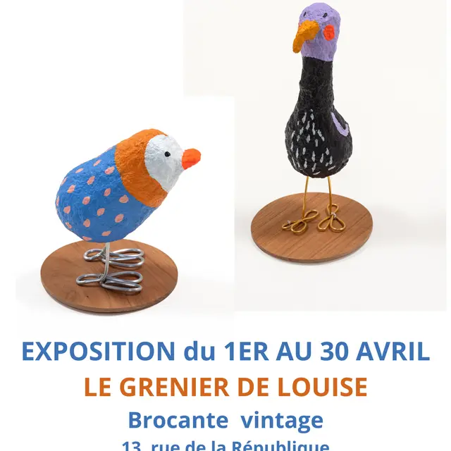 Exposición de Laure Baudry en Le Grenier de Louise, un rastro vintage situado en Valence d'Agen.