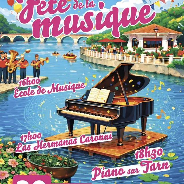 ¡3 conciertos gratuitos a orillas del Tarn! 16:00: concierto de la escuela municipal de música / 17:00: concierto de Las Hermanas Caronni / 18:30: Piano en el Tarn + Venta de helados y bebidas frías a cargo de Ô Péché Mignon.