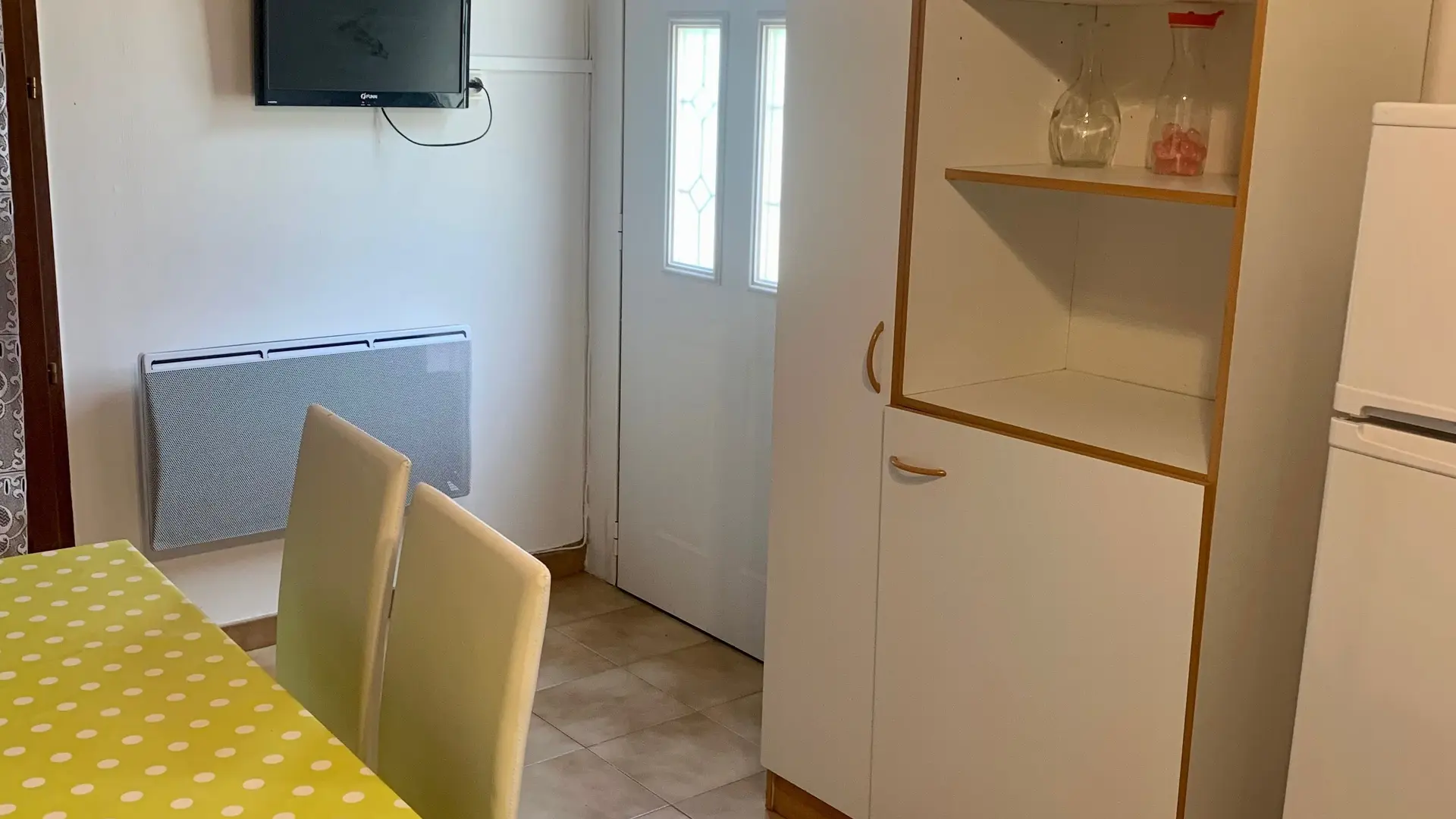 Agrupado en el mismo edificio con otras 3 viviendas, este 39 m2 "Garenette" Gîte/chalet ofrece: 1 cocina de sala de estar (TV), baño con WC. 1 dormitorio con ducha y WC (BZ Bench en 140). Arriba: 2 cheques en entrepiso (1 cama 140) (2 literas 90). Entrada independiente para cada cabaña. Barbacoa común.