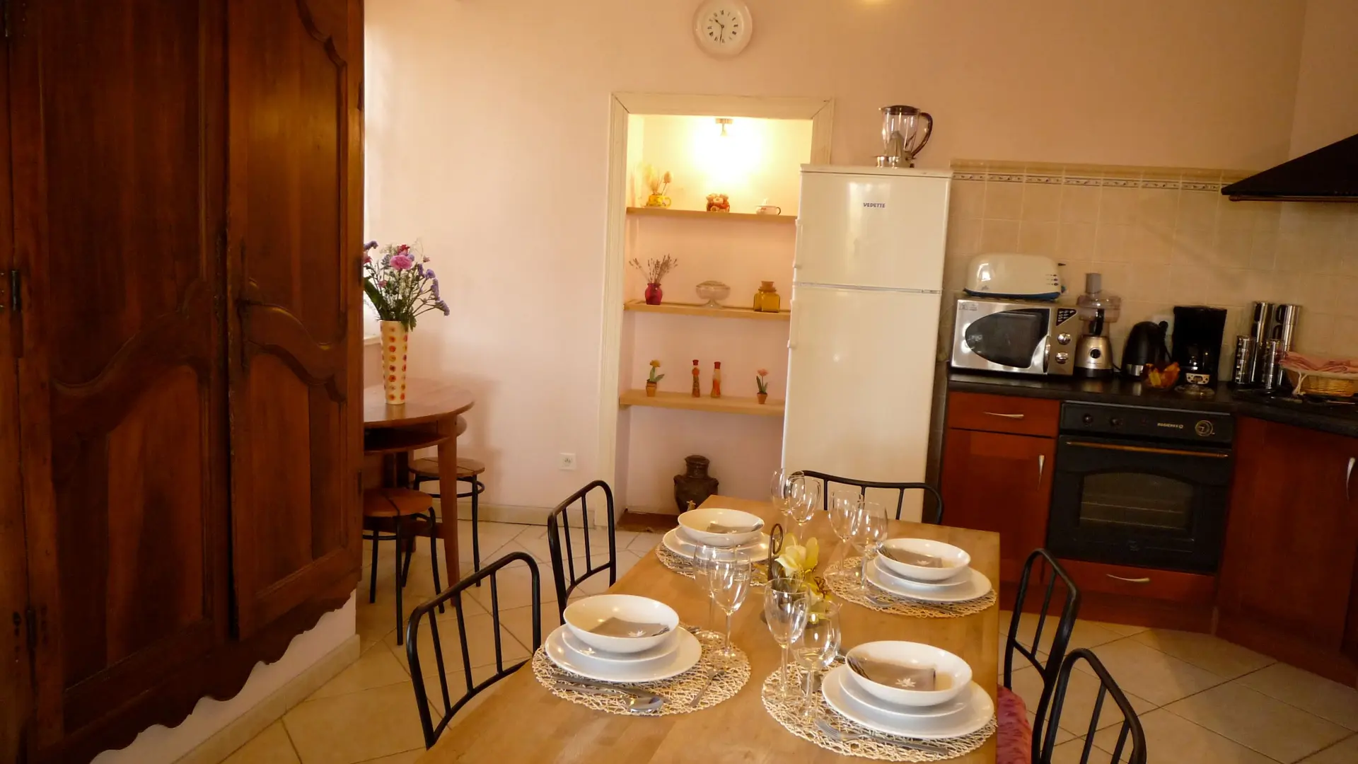 El alojamiento incluye: hall de entrada, cocina (microondas, lavavajillas, lavadora), sala de estar (chimenea, reproductor de DVD, 2 sofás), 1 dormitorio (1 cama 140), 1 dormitorio (1 cama 160), 1 HP (2 camas 90), 1 baño, 1 baño/WC, 1 WC. Cava. Terraza bajo Pergola. Ping pong.